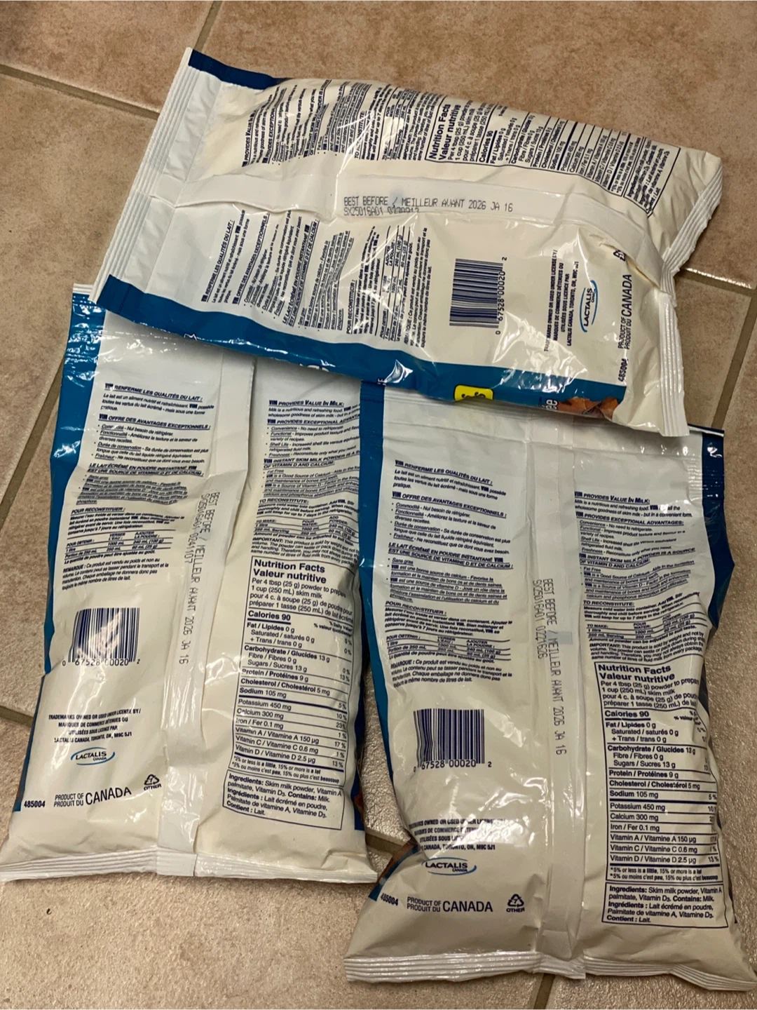 3 bags of VIM Instant Skim Milk Powder. They're great for adding to recipes or just use for milk (add to cold water).