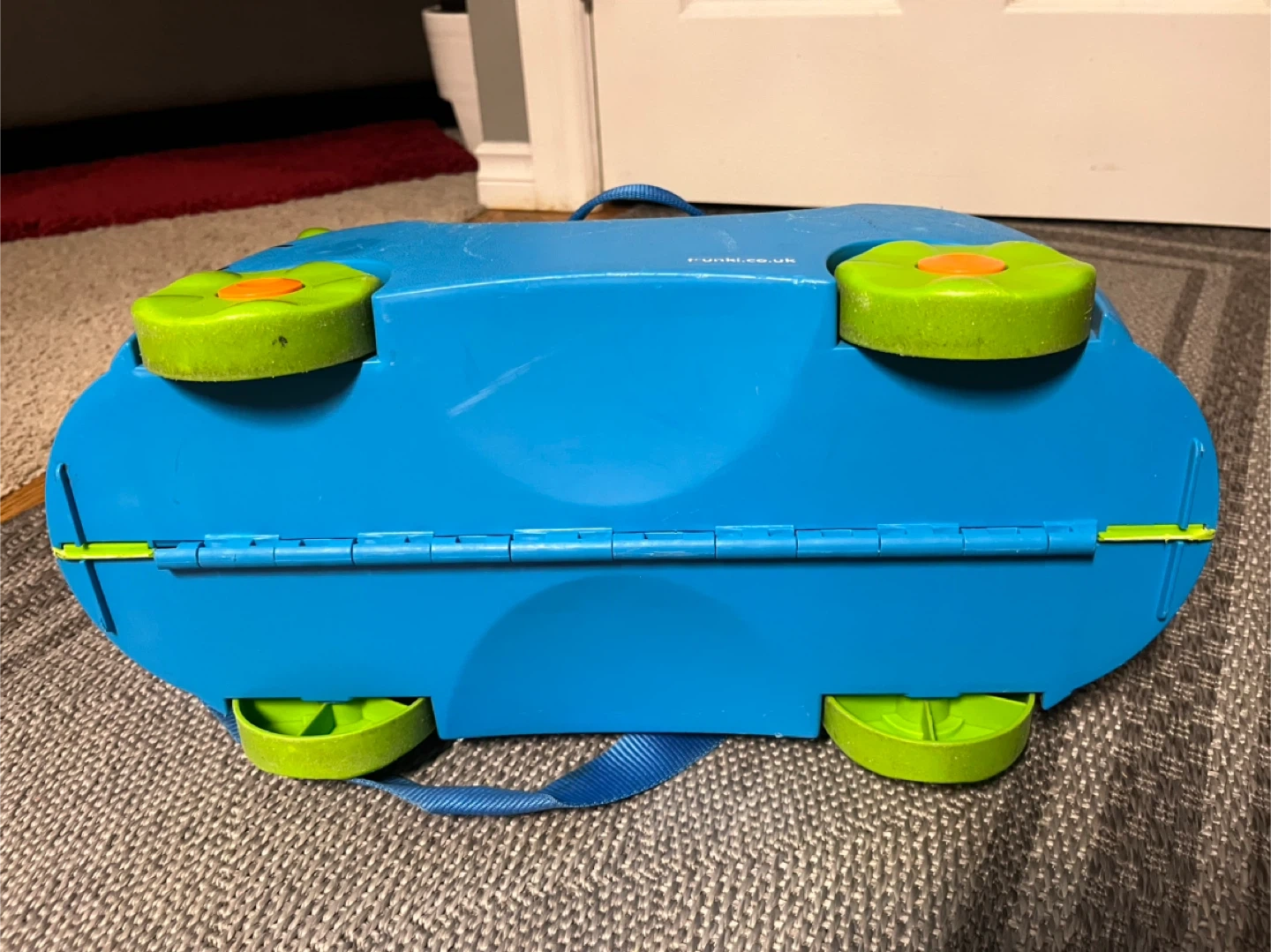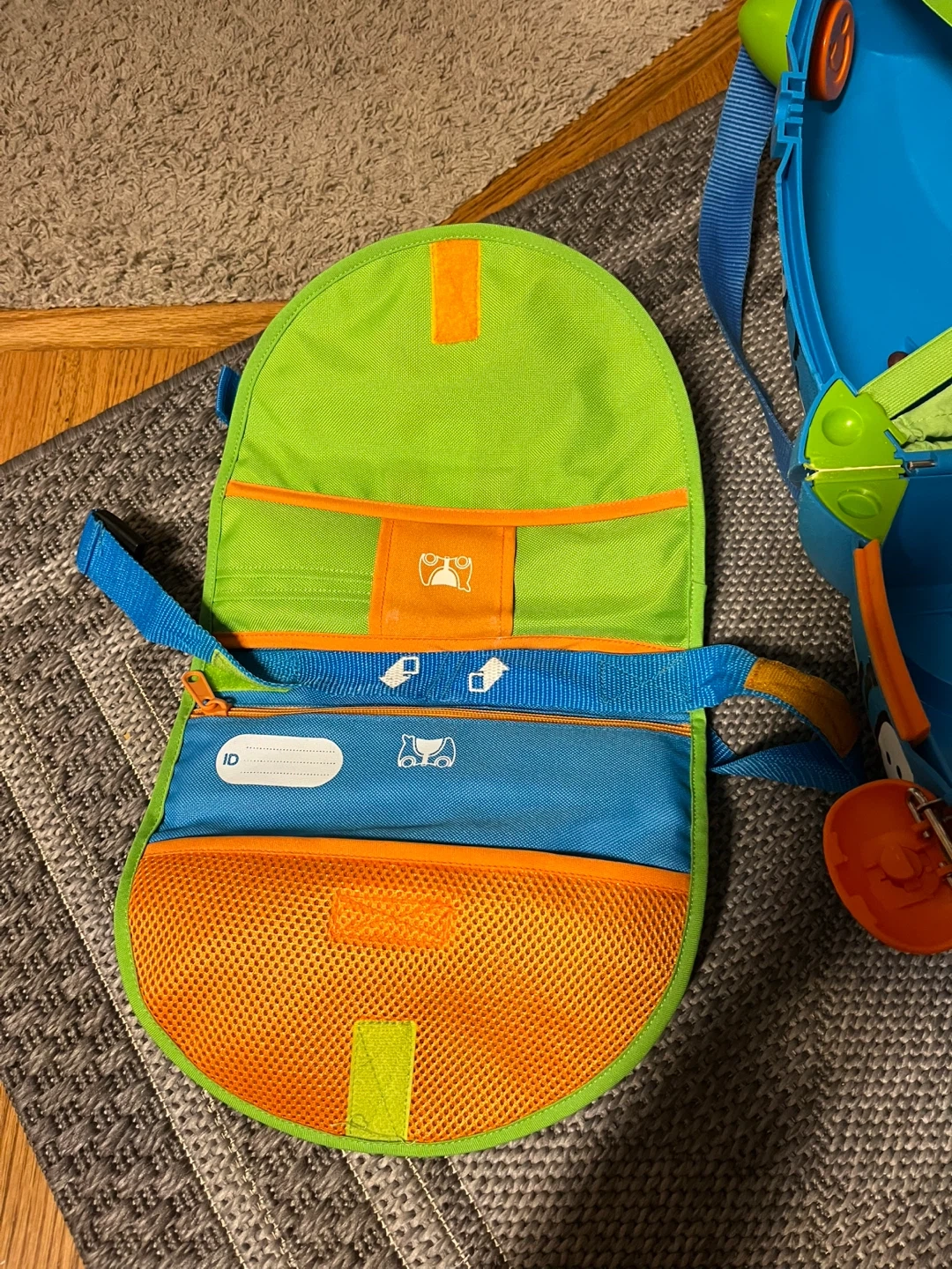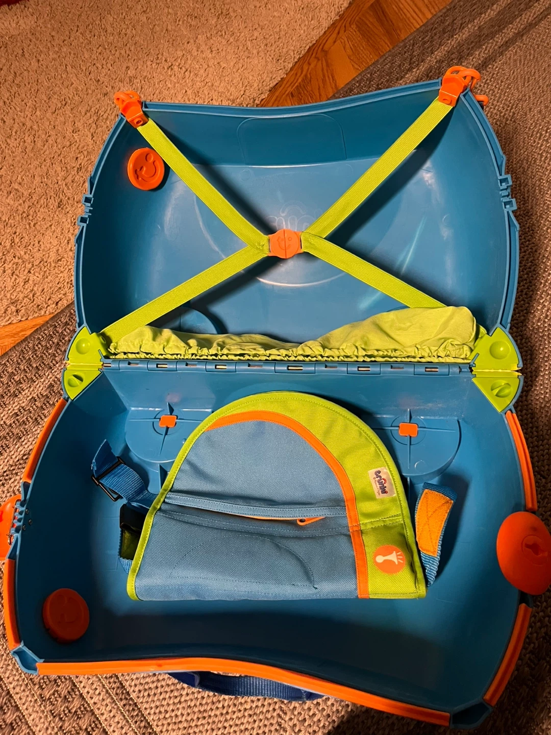 Selling a Trunki ride-on suitcase for kids! It's in great shape and ready for its next adventure. This blue suitcase is perfect for travel and keeping your little one entertained on the go. It also comes with a handy shoulder strap and interior straps to secure belongings