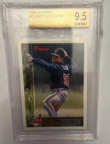 Up for sale is a 1995 Bowman #22 Bartolo Colon Rookie Card, graded BGS 9.5. This card features the Cleveland Indians pitcher in his early career and is a great addition to any Major League Baseball fan's collection. It features the player's name, team, and card number. This is from the early days of Beckett grading with the sub grades on the back: 9.5 centering, 9.5 corners, 9.5 edges, 9 surface.