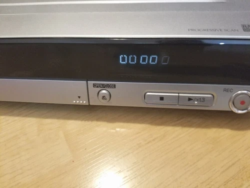 Up for sale is a vintage Panasonic DMR-ES20 DVD Recorder. It comes with the remote and power cord. The display shows '0000' flashing. I've been told this is a fairly easy repair. Otherwise, it's in great physical and visual condition. Feel free to message if you have any questions!