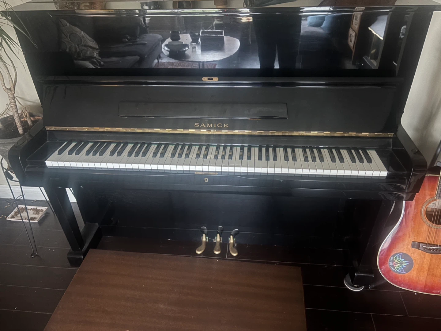 Selling a Samick upright piano! It's in good condition and would be perfect for anyone looking to learn or upgrade their instrument. It comes with the bench.
