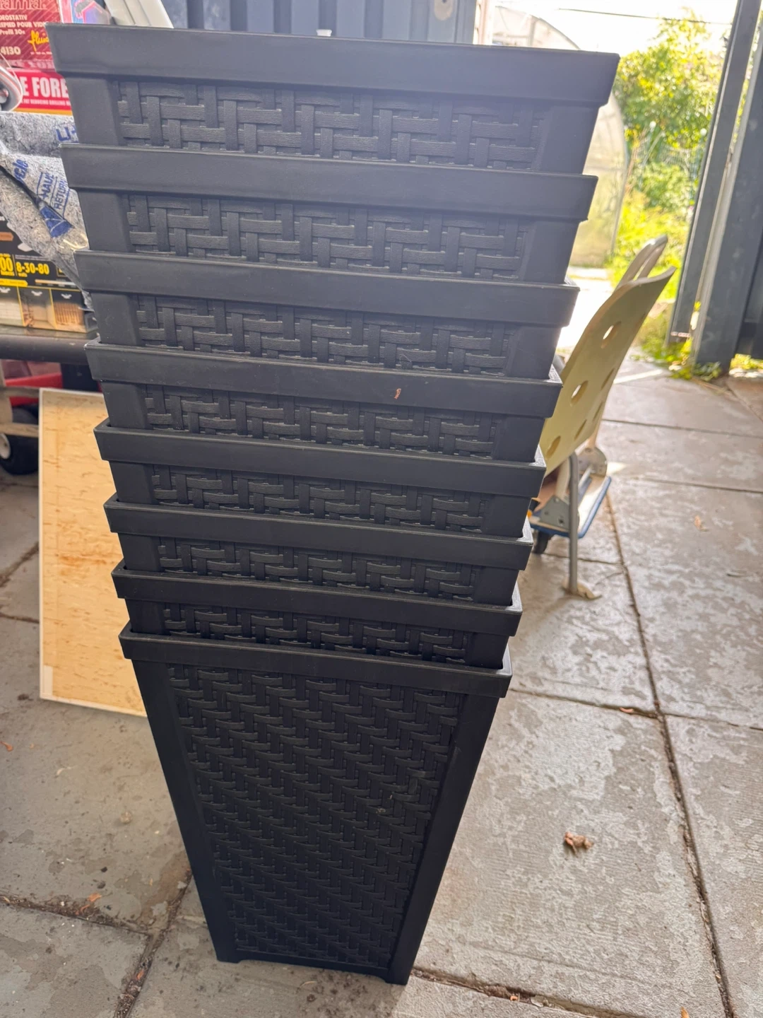 Selling tall planters with a nice wicker pattern. They're in good condition and would look great on a patio or balcony. Perfect for adding some greenery to your space! $65each.