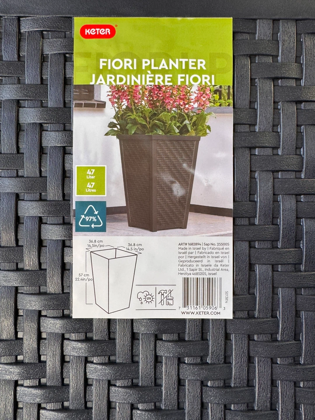 Tall Black Wicker Pattern Planter