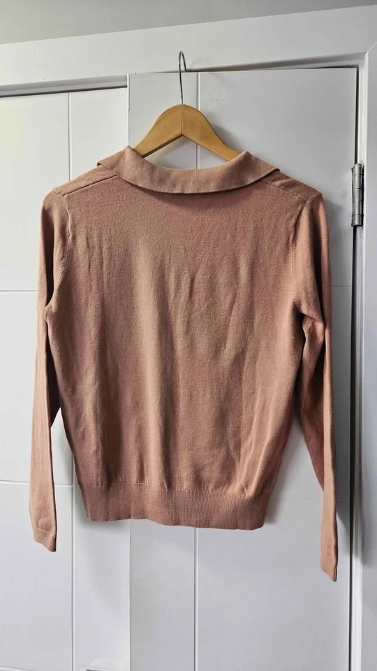 Soft H&M knitted polo top in a pretty dusty rose color with long sleeves. Size Small. Super comfy for everyday wear. Features a button front and collar. Pick up near Yonge and St Clair.