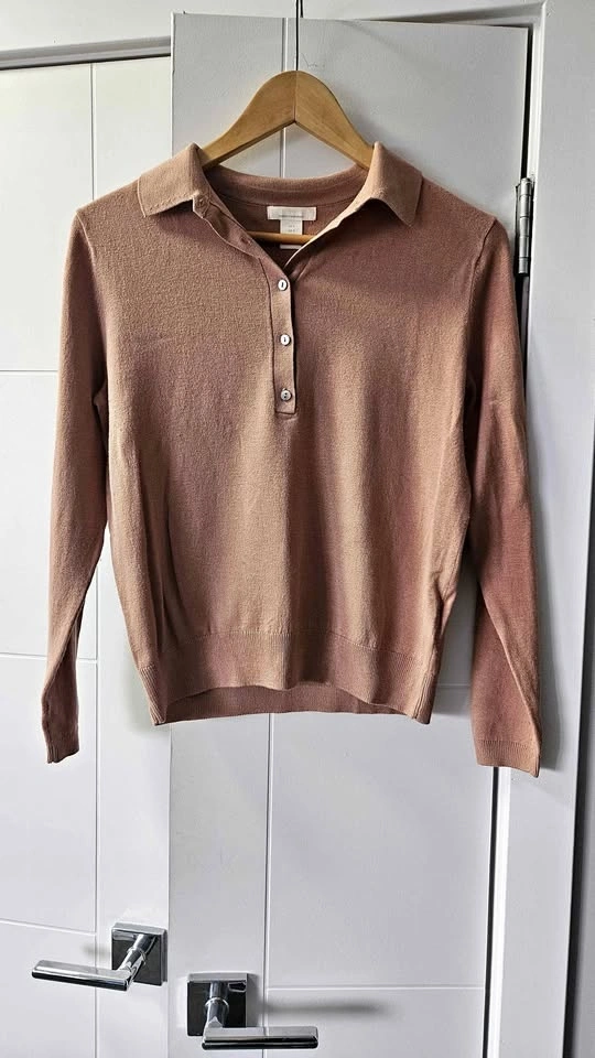 Soft H&M knitted polo top in a pretty dusty rose color with long sleeves. Size Small. Super comfy for everyday wear. Features a button front and collar. Pick up near Yonge and St Clair.