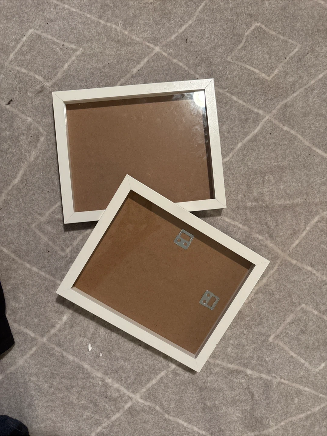Selling two picture frames with a clean white finish. Perfect for displaying your favourite photos or artwork! They're in great shape and ready to add a touch of style to your home