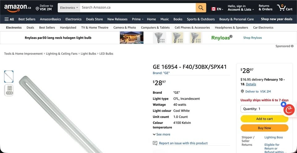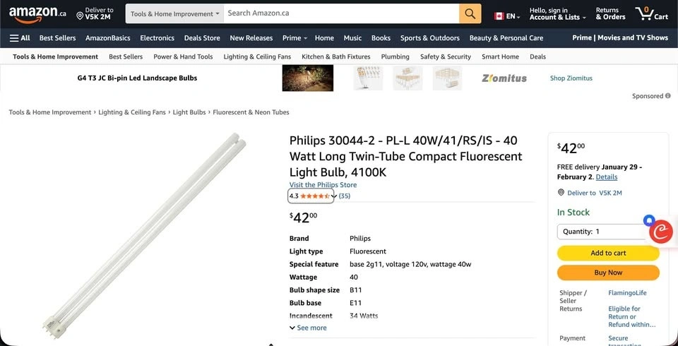 Priced to sell in CASH. Pick up Hastings-Sunrise area. 40 Watt Long Twin-Tube Compact Fluorescent Light Bulb, 4100K. Philips Brand New. GE Slightly Used.