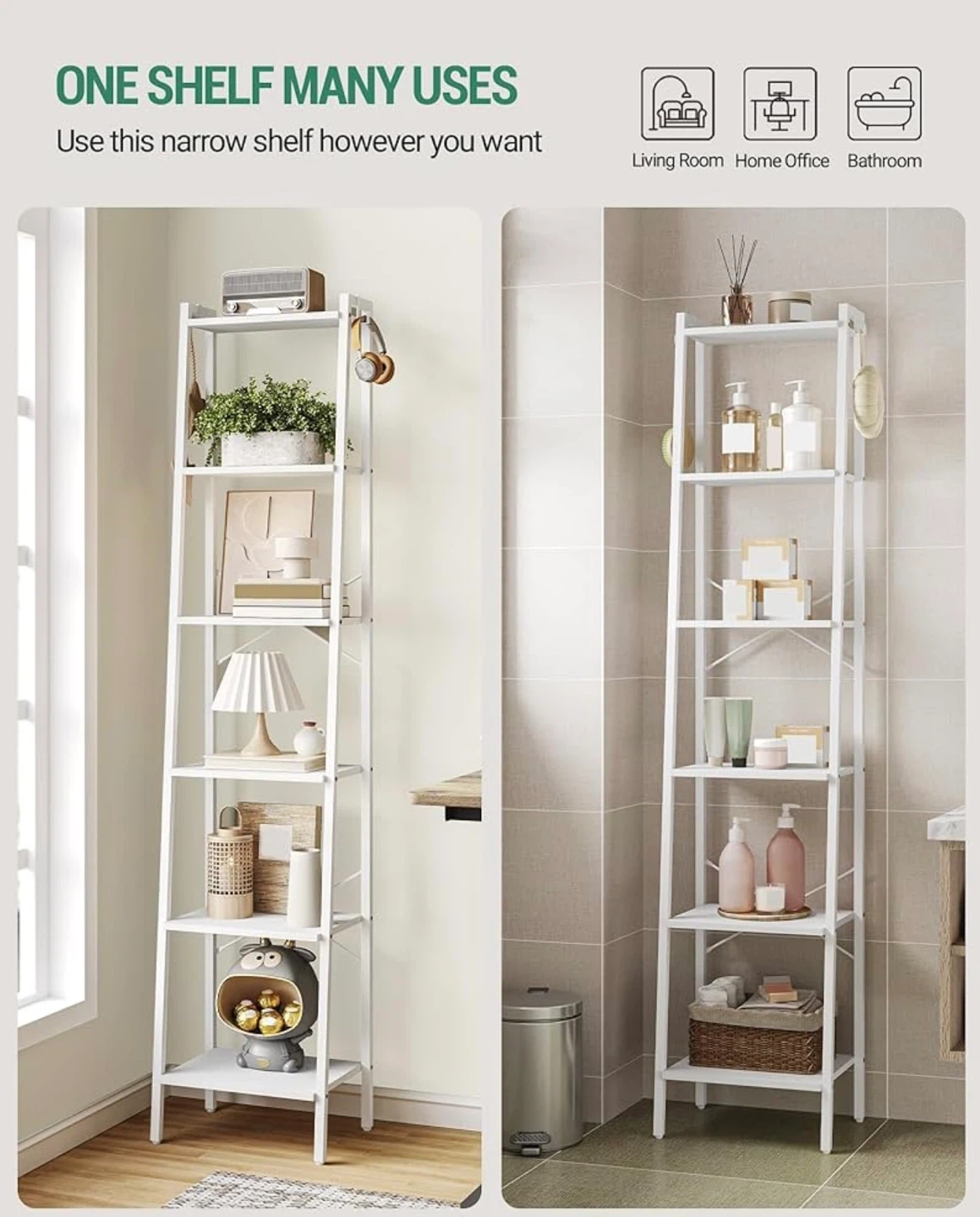 * Six Spacious Shelves: Offers plenty of room for storage and display.
