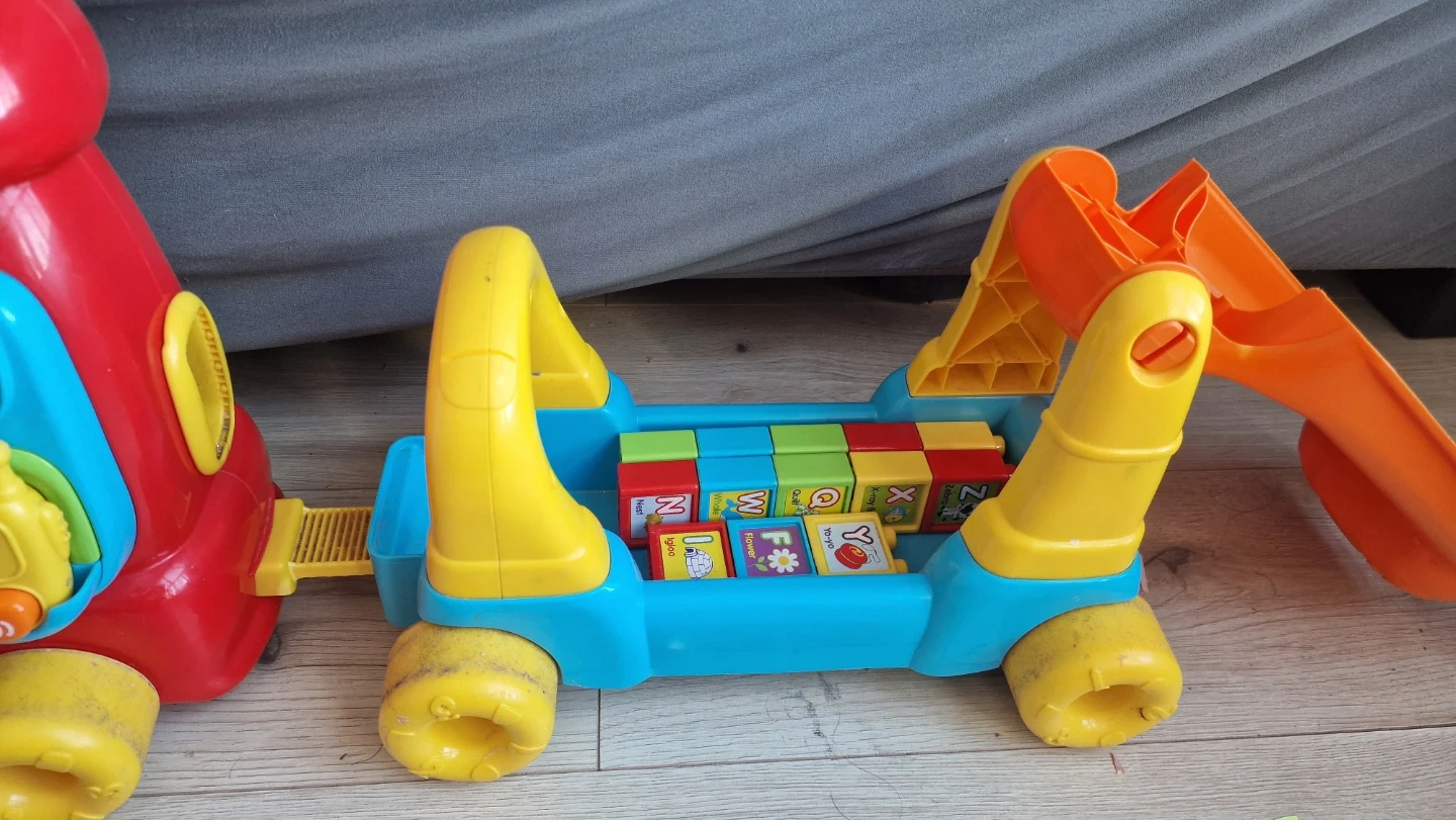 This VTech Alphabet Train is a very interactive train. It includes alphabet blocks that can be plced on the train for it to read the letter out and it will also count the number of blocks put through the train. It's designed for children to learn and play with!