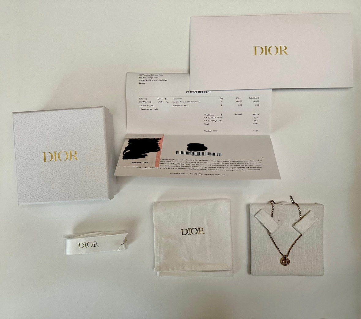 5I’ve barely worn this beautiful necklace! Claire D Lune Necklace Gold-Finish Metal and Silver-Tone Crystals Adjustable length 38-42 cm / 15-16.5 inches. Comes with original receipt, box, and ribbon. Purchased from Dior Hotel Vancouver.