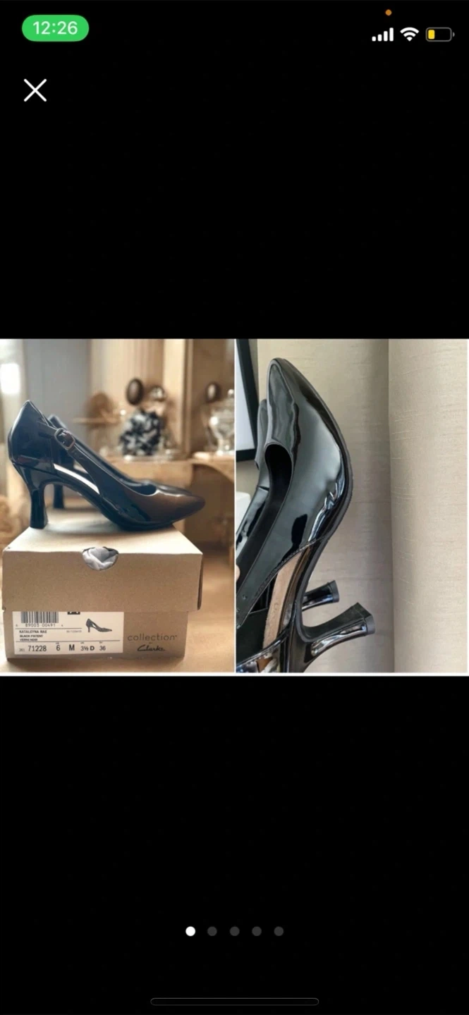 First come first served Great as new Selling for a friend a pair of Clarks black patent heels in size 6. They are in great condition and come with the original box! The outlet price was $119.99
