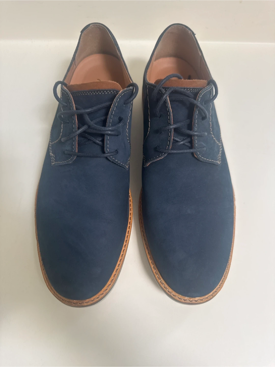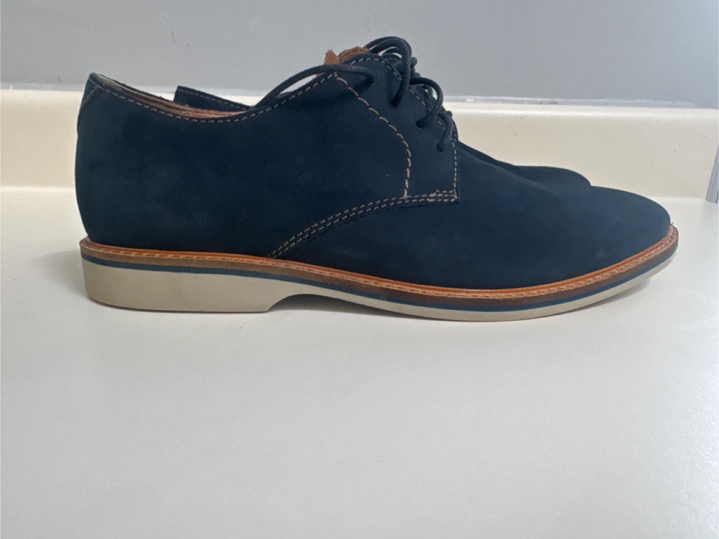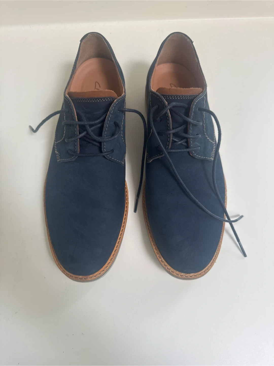 60Selling a pair of Clarks dress shoes in a stylish blue suede finish! They are in great condition and would be a fantastic addition to your wardrobe. Feel free to message me with any questions! Size 10 1/2 only worn twice