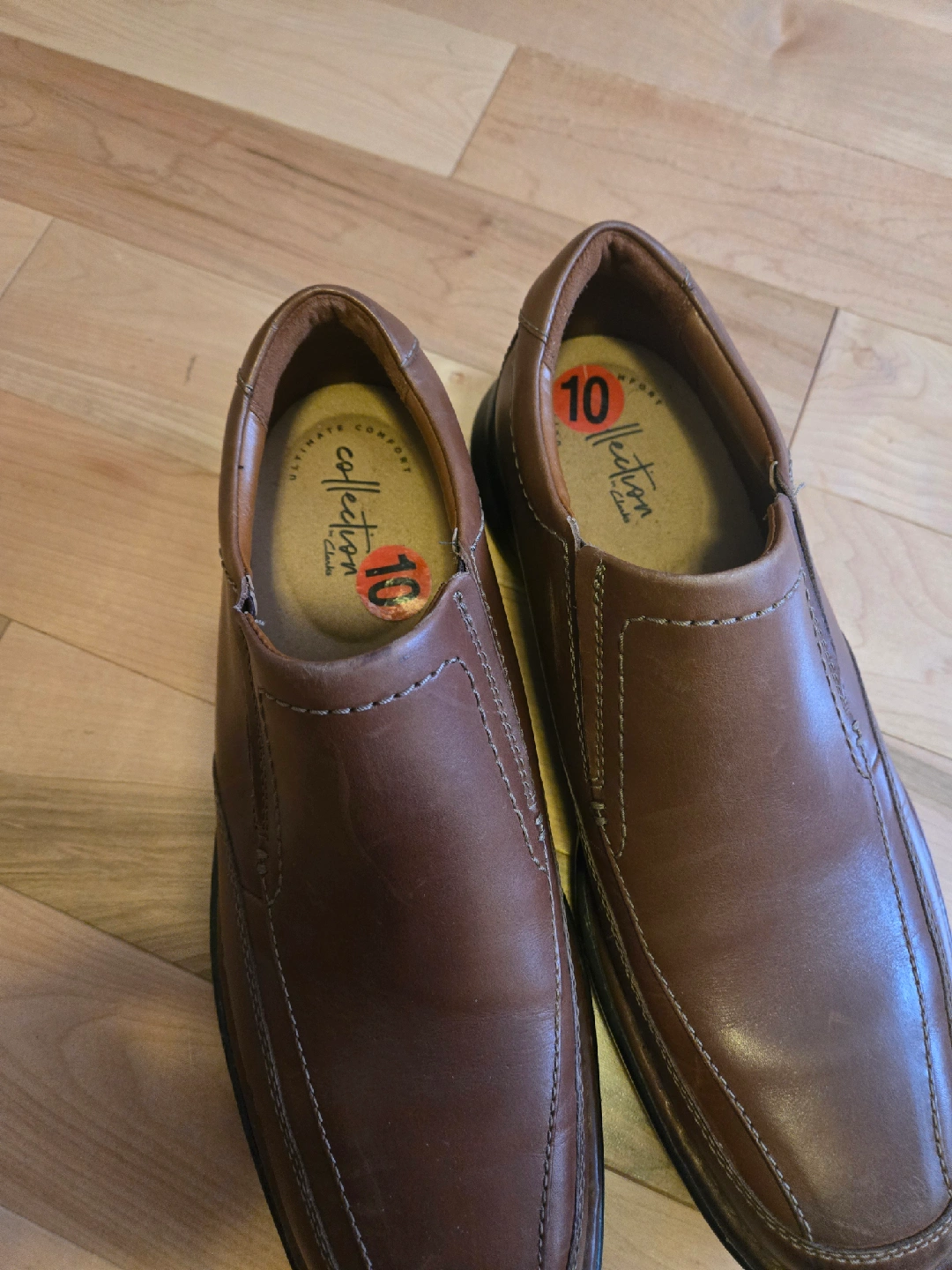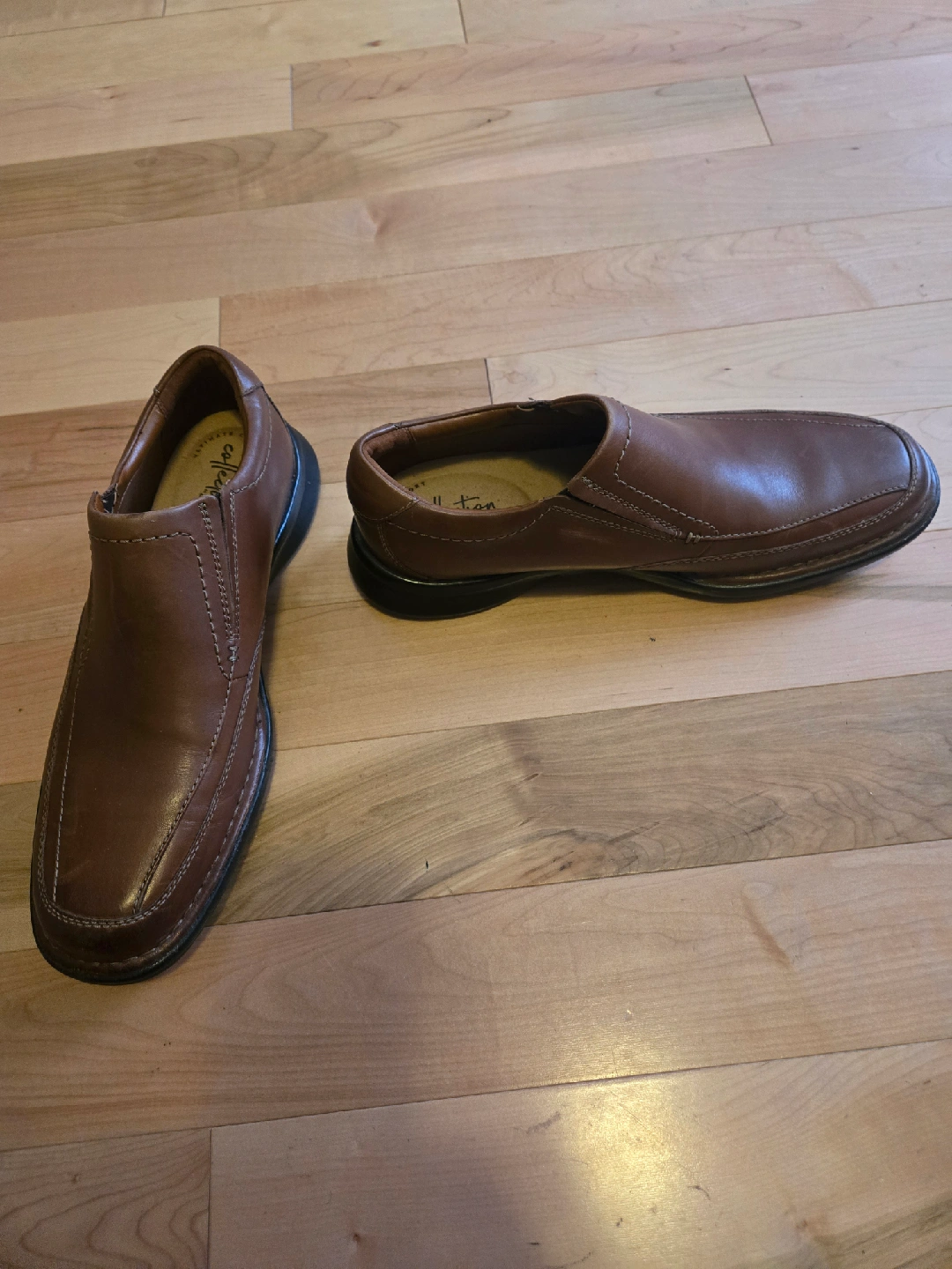 Selling a pair of Clarks Collection brown leather loafers in size 10. They're a great addition to someones wardrobe. Perfect for everyday wear or dressing up a bit