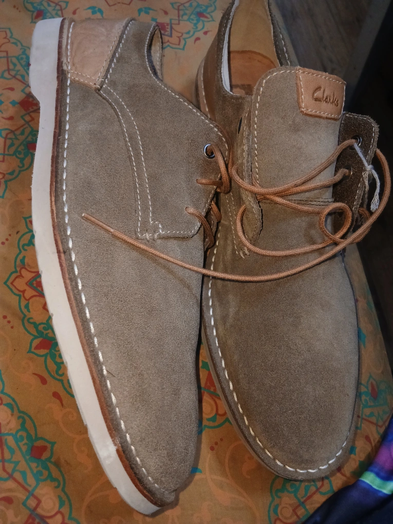 Selling a pair of Clarks men's shoes in a nice suede material! They are a US size 12. The shoes are in good condition and ready for a new home