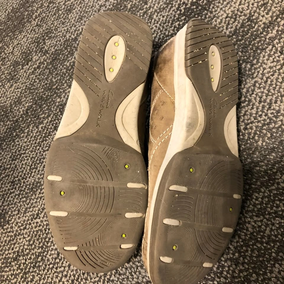 0Used size 7 men's Clarks Wave Walk loafers, brown
