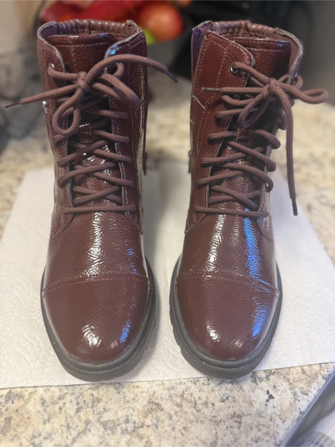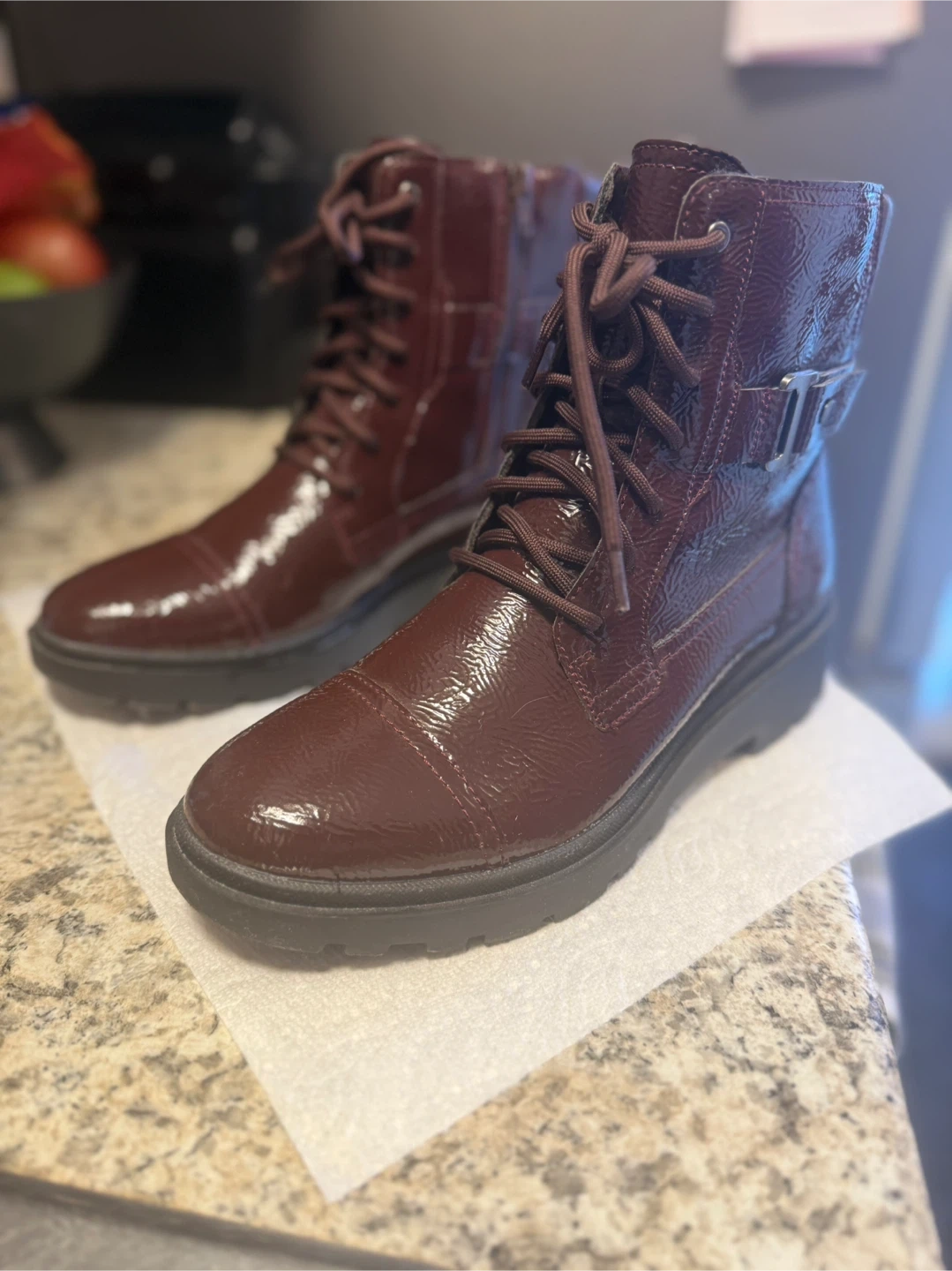 20Selling a pair of Clarks women's boots in a beautiful burgundy colour! They are a size 9.5 US / 7 UK. These boots have a stylish lace-up design and are perfect for adding a touch of elegance to any outfit