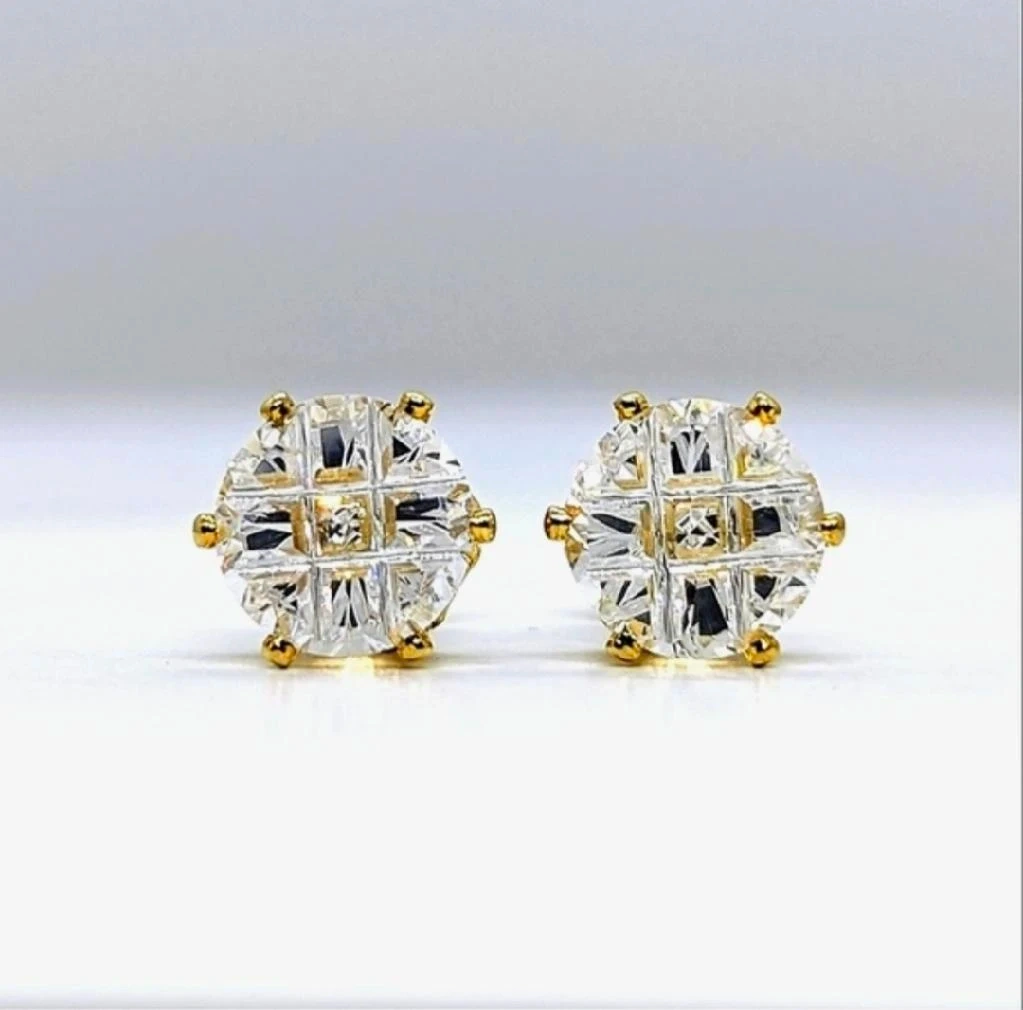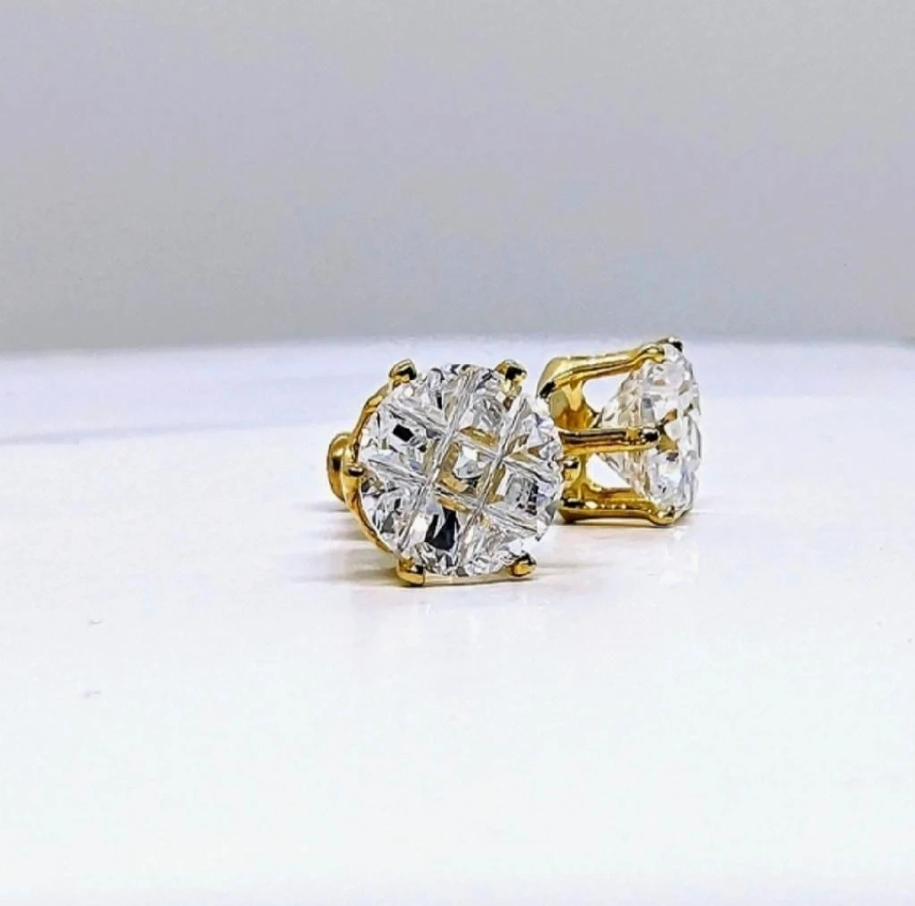 10🎉 Flat-Rate $5 Shipping! Get your sparkle delivered straight to your door without breaking the bank. Sparkle with these beautiful, high-quality stud earrings! They feature brilliant AAA Grade Cubic Zirconia stones in a dazzling checkerboard cut. Key Features: • Premium Gold Overlay: Luxurious 14K Gold Overlay, 25x thicker than standard plating for lasting beauty and durability. Stones: High-Quality 3A Cubic Zirconia (7mm each). • Design: Classic 6-Prong Setting, Round Shape, High Polished finish. • Comfort: Hypoallergenic Post, Lead- and Nickel-Free. • Material: Cubic Zirconia, Gold Overlay, Friendly Brass. A timeless addition to any jewelry collection. Treat yourself or a loved one!