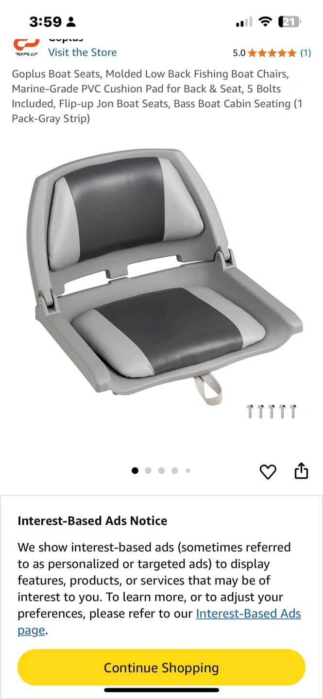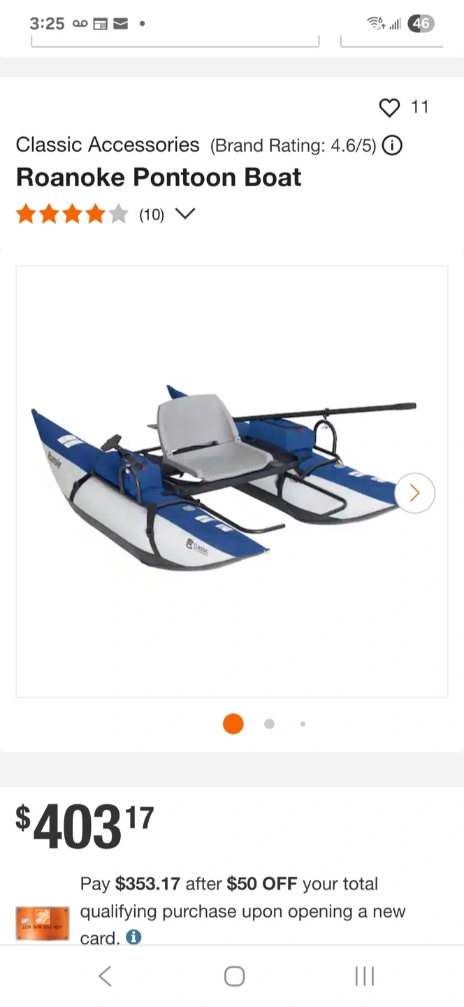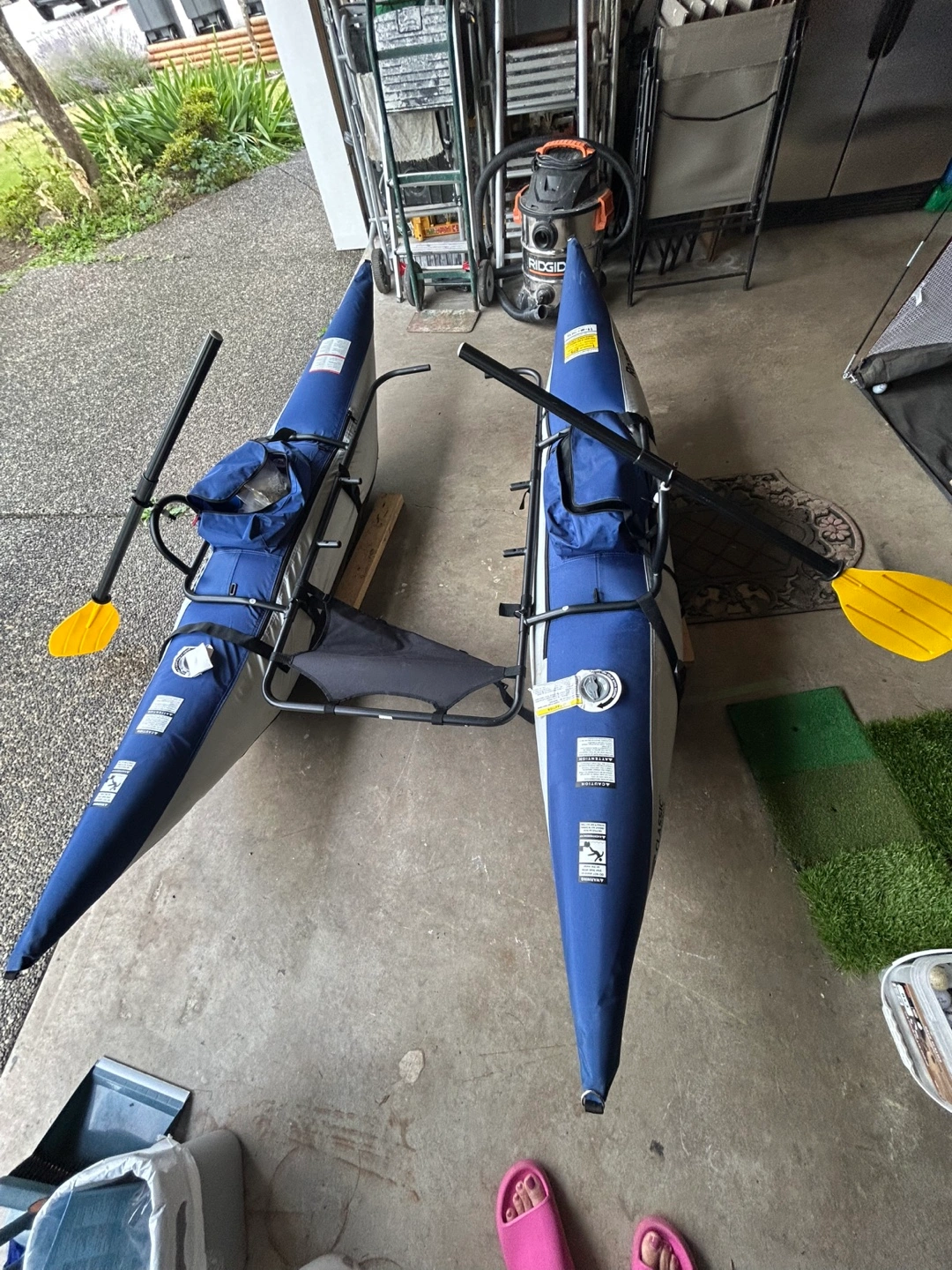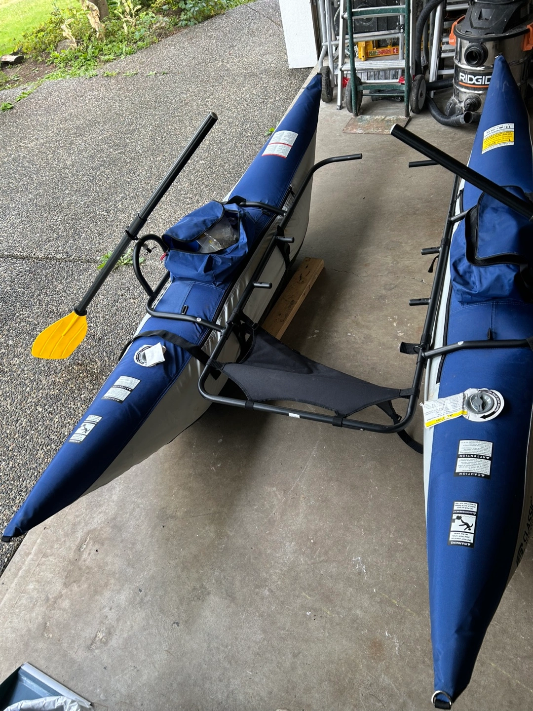 34Selling a Classic Accessories Roanoke pontoon boat. It comes with the oars, pump, and other accessories shown in the pictures. Also includes the owner's manual! The boat is almost new. It does not have a chair and seat frame. You can buy a chair at Home Depot or Canadian Tire.