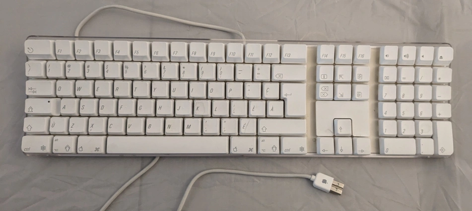 Probably one of the best keyboards Apple ever made for their Mac computers. All keys work. Keys are clean, no crumbs.