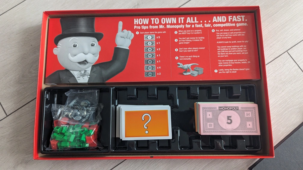 39Fast-dealing property trading game: it’s a family game night staple players buy, sell, dream and scheme their way to riches with the monopoly board game Community chest cards: fans voted for cards they'd like to see, and the votes are in this edition includes 16 winning cards, each reflecting some great things about being part of a community Players buy, sell and trade to win: players buy out neighborhoods, sell properties, charge rent, and grow an empire in the monopoly game for adults and kids age 8 and up Build houses and hotels: love that feeling when an opponent lands on an owned property? in this family board game, the more players build, the more rent money they can collect cha-ching What’s your token?: tokens include rubber ducky, t-rex, penguin, hazel, scottie, racecar, hat, and battleship it's a great game for family game night, or anytime indoor fun