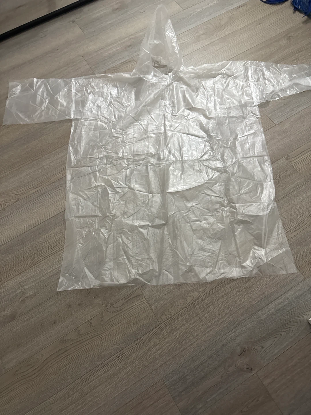 483Selling a clear disposable rain poncho. It's lightweight and easy to carry around for unexpected showers! Unisex fits, medium to a light large. Great for anyone that works outdoors or anyone that doesn’t like to carry an umbrella.