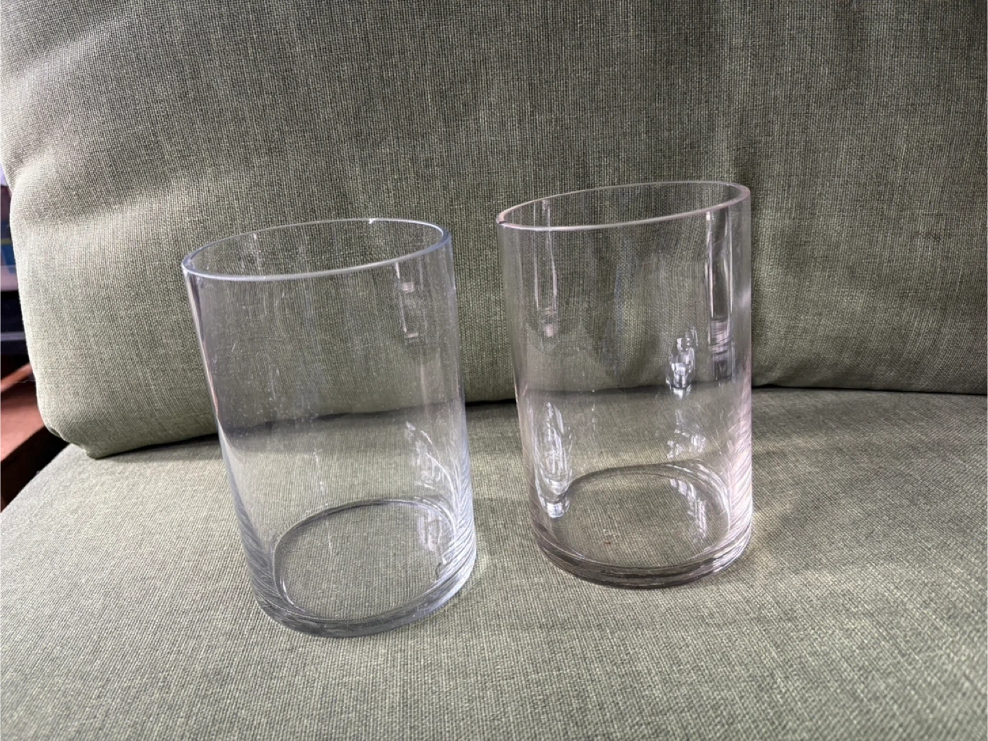 941Selling 12 clear glass vases! 4” x 6” They're in great condition and perfect for displaying flowers/candles. I also have another 6 that have a very tiny chip on the rim.
