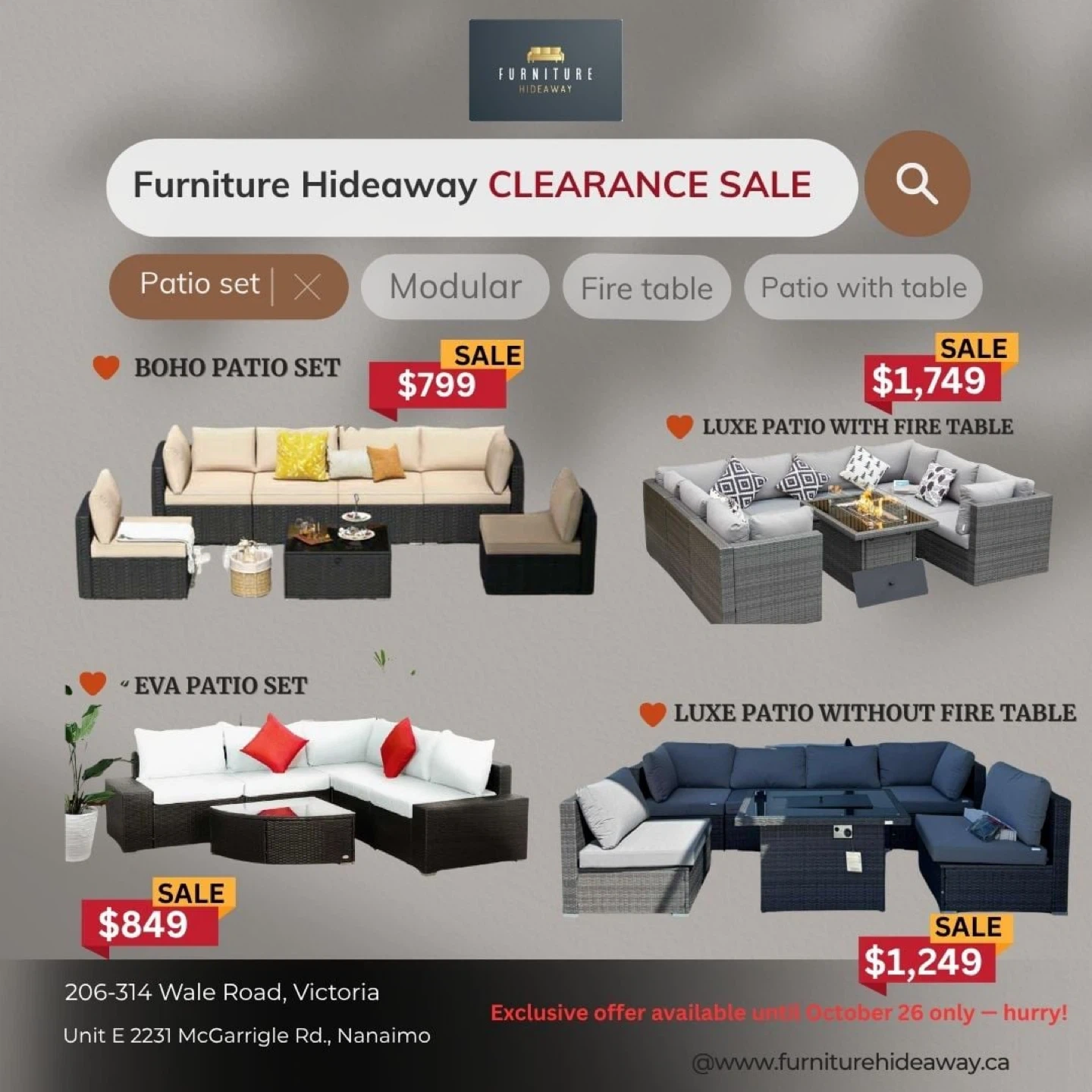 20The big drop is still on! Don’t miss our clearance and exclusive couch sale — only until October 26! 🏃♂️ Hurry in and visit our showroom to discover amazing deals waiting for you! 📍 2 Locations: 206–314 Wale Road, Victoria Unit E, 2231 McGarrigle Rd., Nanaimo