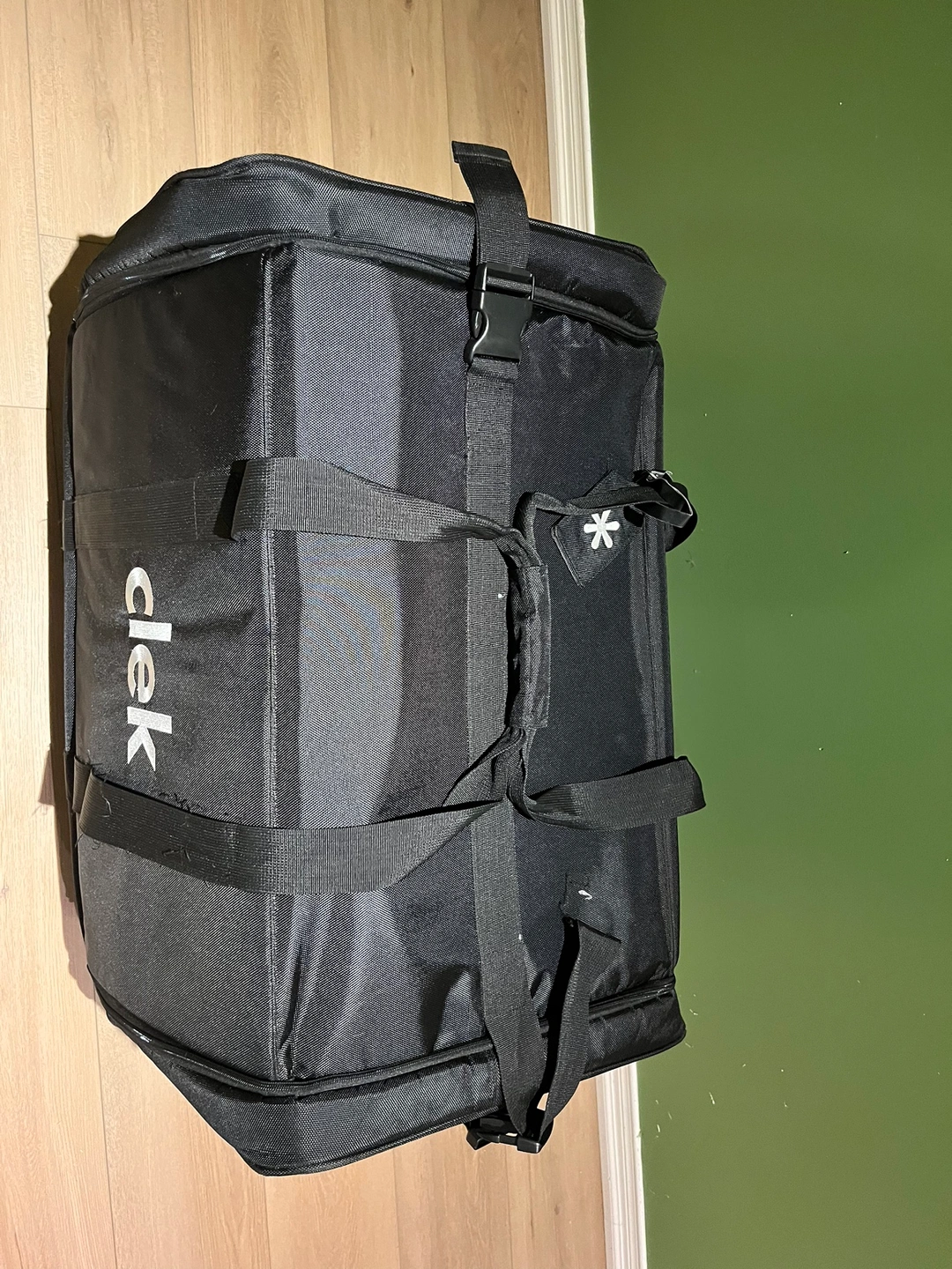 12Black Clek travel bag for car seat. Great for transporting your car seat. We used it for our Clek foonf. It also stores flat. Cash and pick up only