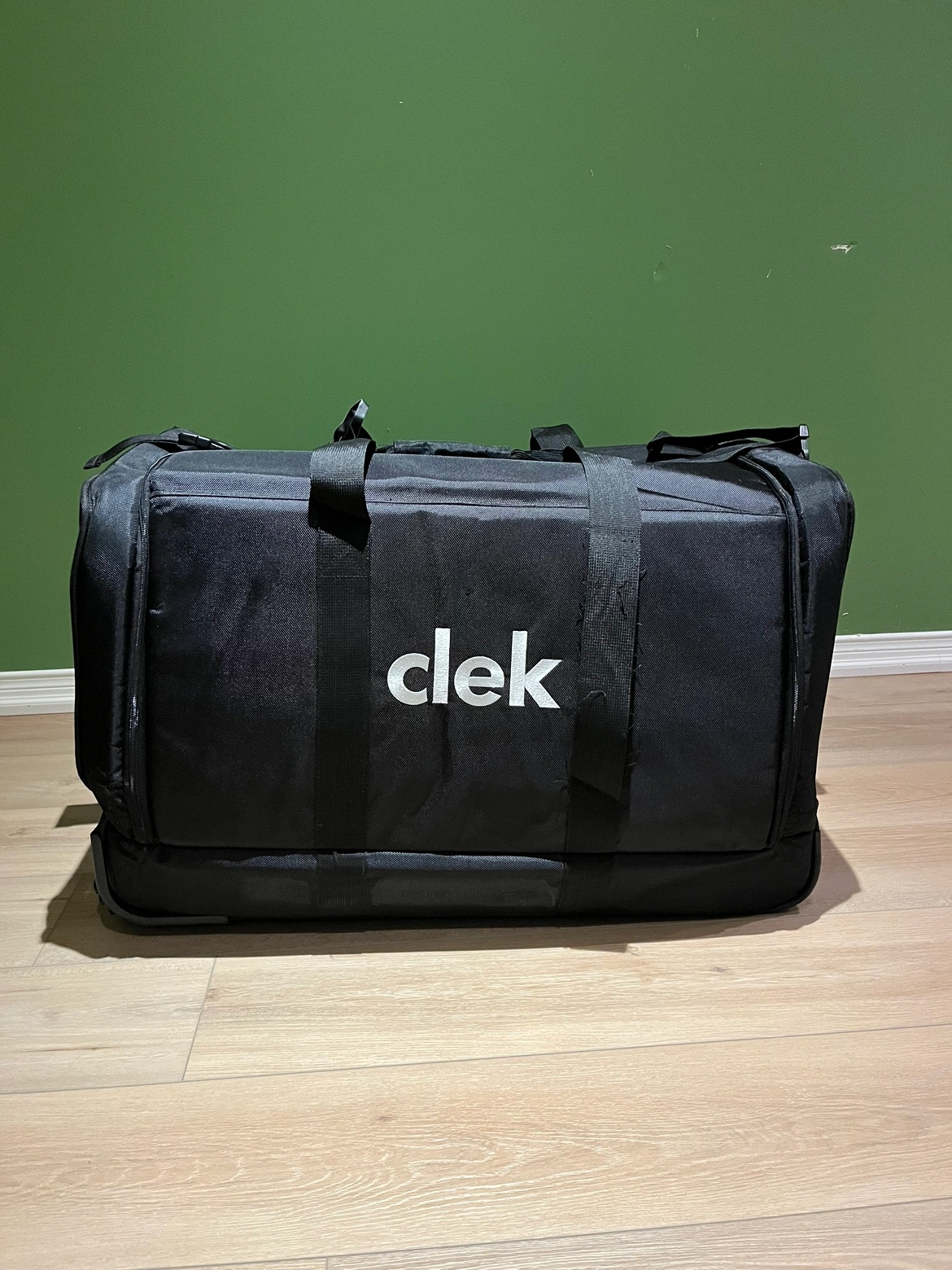 12Black Clek travel bag for car seat. Great for transporting your car seat. We used it for our Clek foonf. It also stores flat. Cash and pick up only