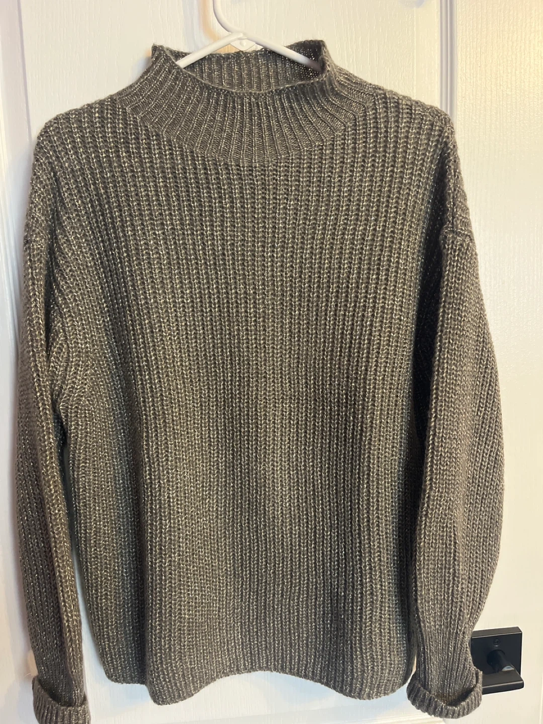 A cozy grey knit sweater from Cleo in size medium! Perfect for layering or wearing on its own. Never worn. Pet and smoke free home. Pick up in Stittsville.