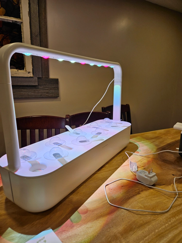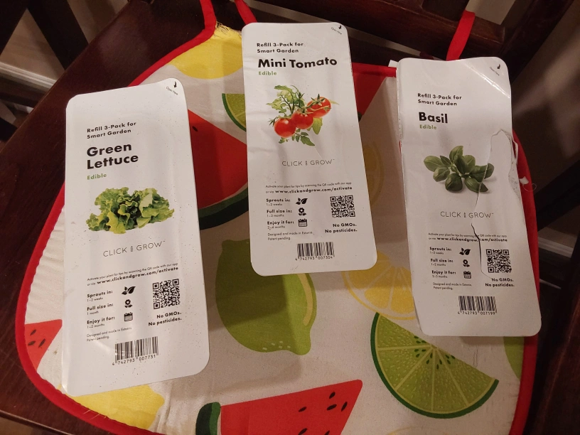 10Click and Grow Garden 9. 125.00 or make a reasonable offer The Smart Garden 9 is an innovative self-growing garden for every home and every plant growing need. Experience the benefits of having your own garden, no matter where you live. Grow 100% organic herbs, fruits, salads and flowers, free from GMOs and pesticides, fresher than any plants you’ll find in stores. With Click & Grow you’ll get: Automatic watering Perfect amount of light thanks to pro-grow lights Perfect amount of nutrients and oxygen at root level Companion app to become a plant expert Choose from 75+ pre-seeded plant pods from our selection or use your own seeds Navigation Click and Grow The Smart Garden 9 Ideal for growing herbs, fruits, flowers and vegetables all year round. With Click & Grow you’ll get: Product Specifications Model name Smart Garden 9 Plant pod capacity 9 Product width 604 mm (2′) Product height 396 mm (1′4″) Product depth 184 mm (7″) Product weight 2.4 kg (5.29 lb) Product attributes Power consumption 13 W Power consumption per month 6.2 kWh Cable length 2800 mm (9′2″) Water tank capacity 4 l (1.06 US gal) Material ABS Package Package width 620 mm (2′) Package height 215 mm (8″) Package depth 215 mm (8″) Package weight 3.4 kg (7.5 lb)