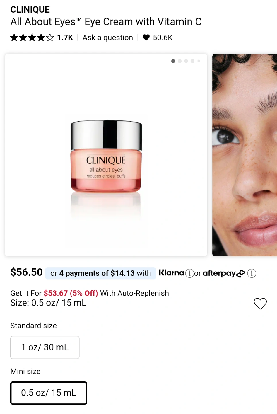 Selling a Clinique All About Eyes eye cream. It reduces circles and puffiness. Size is 0.5 oz / 15 mL Retails for $56.50 for 15ml