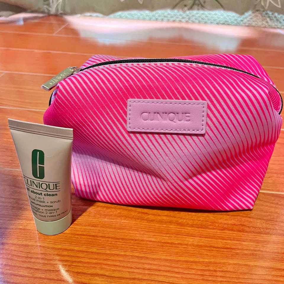 48Pick up at Don Mils & Steeles Clinique Bright Pink Striped Pouch + All About Clean 2-in-1 Charcoal Mask & Scrub (Travel Size) Add a pop of color to your skincare routine with this vibrant pink striped Clinique pouch! Comes with a travel-size Clinique All About Clean 2-in-1 Charcoal Mask + Scrub — perfect for keeping your skin fresh and glowing on the go. • Brand: Clinique • Includes: - 1 Pouch - 1 All About Clean 2-in-1 Charcoal Mask + Scrub (30ml) • Condition: Brand New / Never Used Perfect for travel, gifts, or everyday skincare storage About the Product: Clinique’s All About Clean™ 2-in-1 Charcoal Mask + Scrub is a 5-minute dual-action, detoxifying face mask and exfoliating face scrub that helps remove pollution, impurities, and excess oil, plus refines skin’s texture. Two-in-one formula with bamboo charcoal powder and kaolin clay delivers a powerful, detoxifying clean for polished skin. Leaves skin clear, bright, and feeling smooth. Clinique’s guiding dermatologists recommend gentle exfoliation for all skin types. Sweeping away dulling surface flakes and excess oil helps boost your skin’s natural turnover process so your newest, freshest skin can shine through.