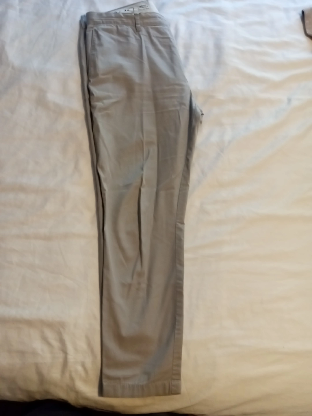 Selling a slim pair of Club Monaco light weight Chino pants in a light grey colour. They are in good condition and ready for a new home!