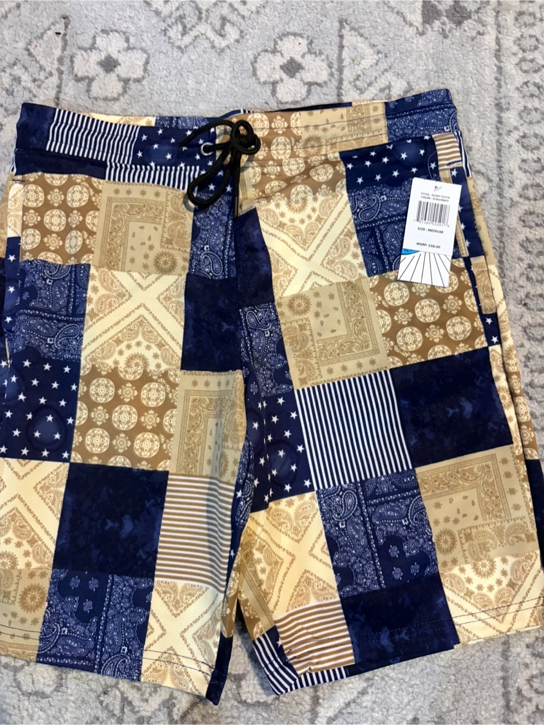 These Club Room swim trunks feature a unique patchwork design! They are size medium and in great condition. Perfect for a day at the beach or pool
