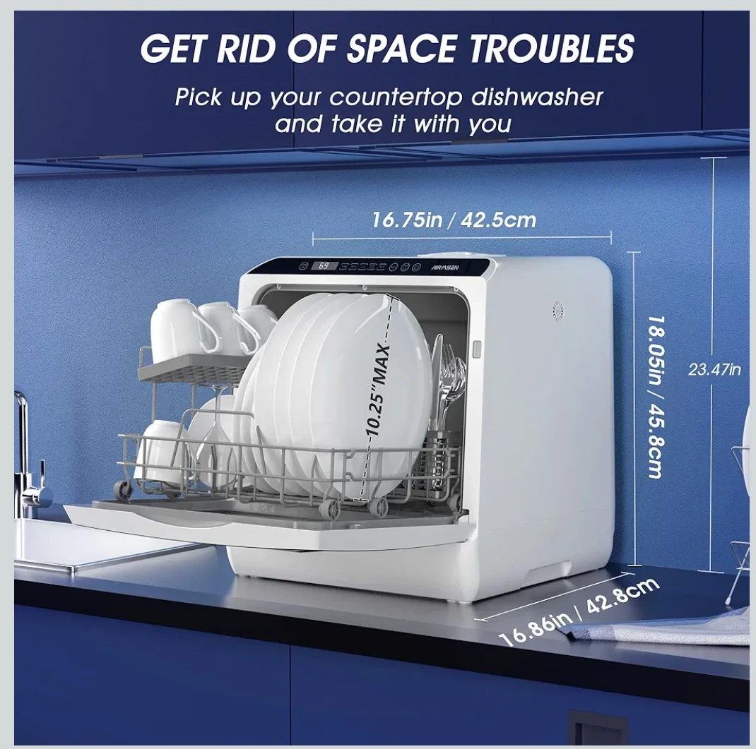 AIRMSEN TDQR03 Countertop Portable Dishwasher