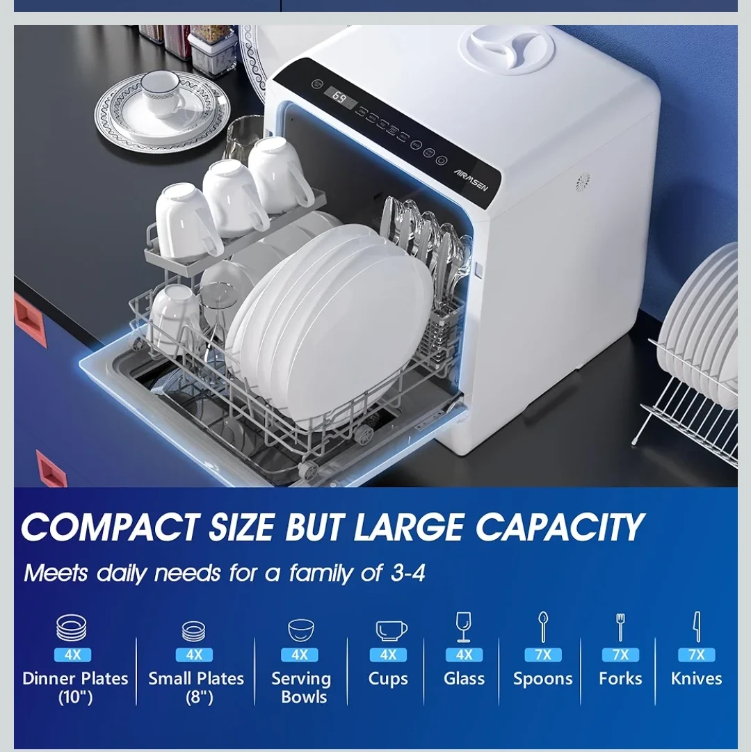 AIRMSEN TDQR03 Countertop Portable Dishwasher