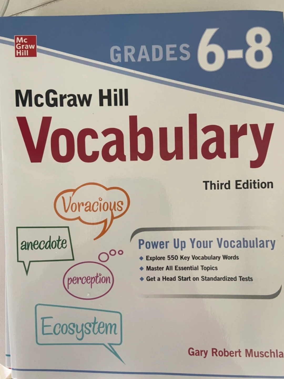 Three NEW educational books for building vocabulary and language arts skills. Includes McGraw-Hill Vocabulary for grades 3-5 (Second Edition) and 6-8 (Third Edition), plus Spectrum Language Arts for Grade 6.