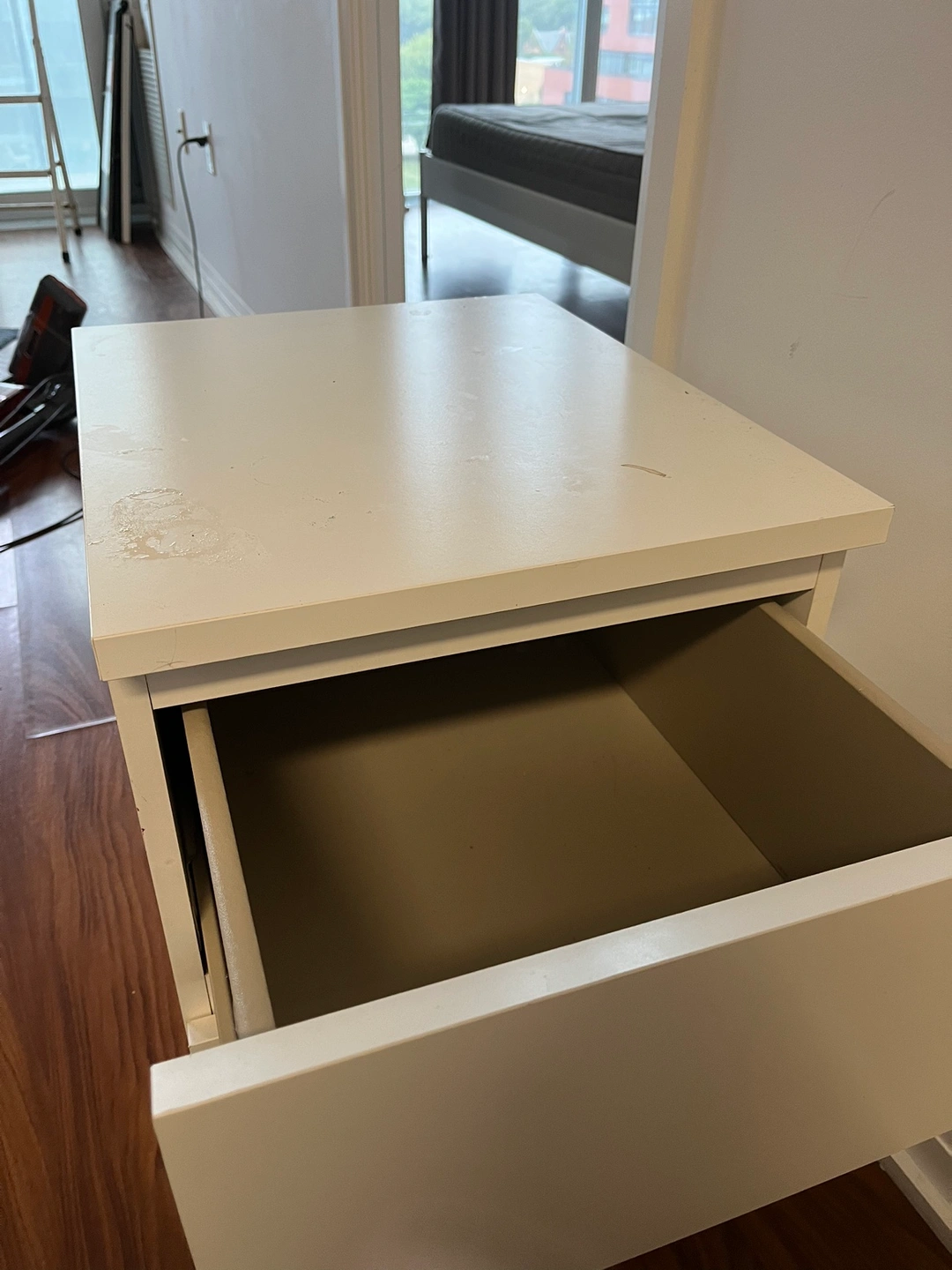 Two drawer nightstand /beside table. Great for storing items and decor. Have some light marks. Pick up before 30th at Dundas and parliament. $5 each, I have two of them.