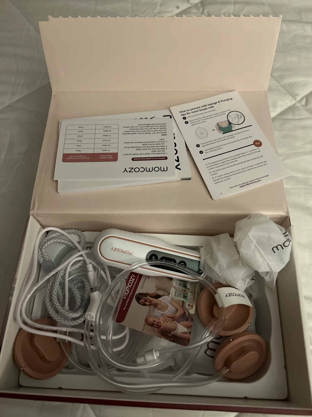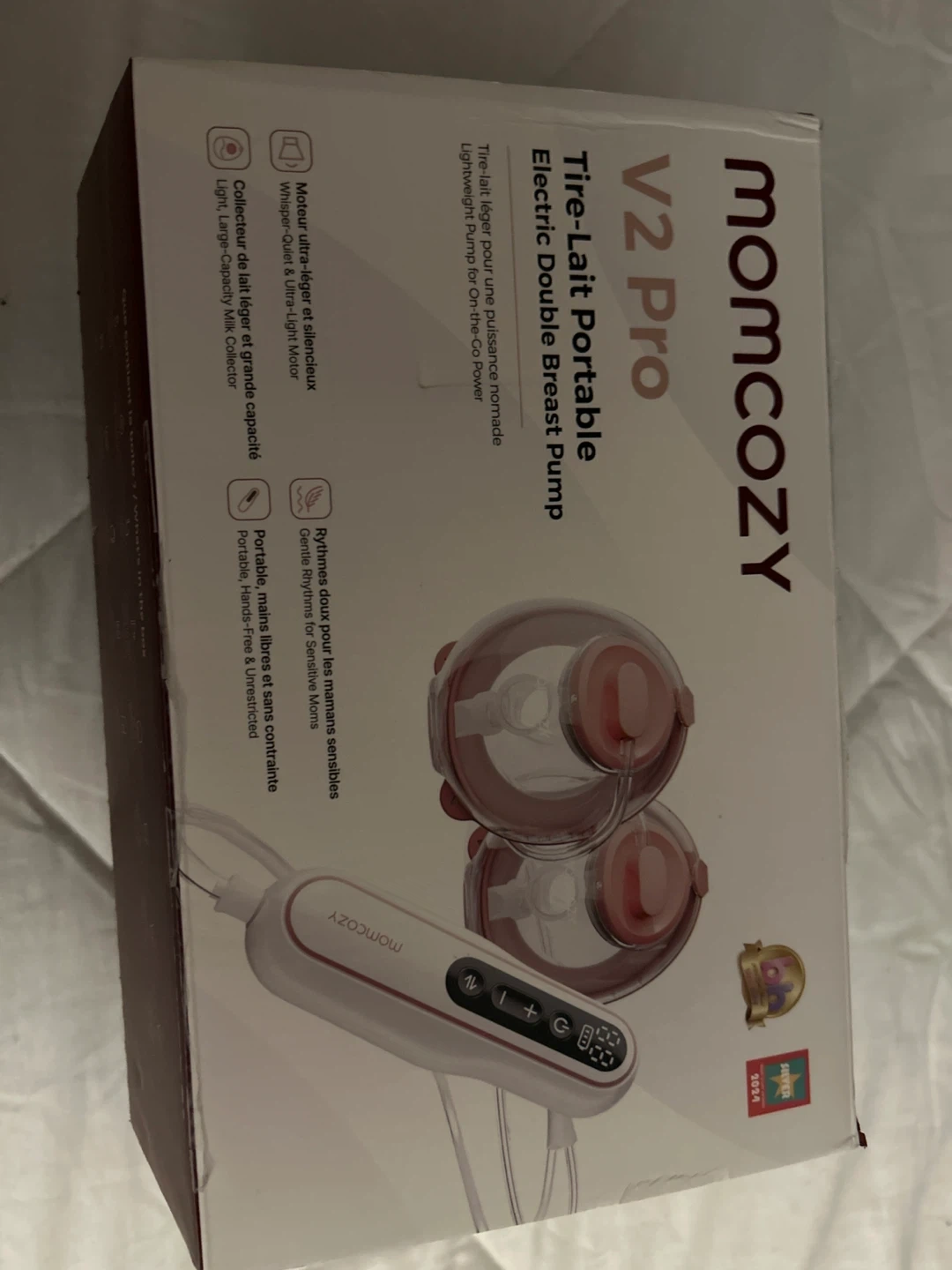 Momcozy V2 Pro electric double breast pump. It's lightweight and portable for on-the-go use. Gentle rhythms for sensitive moms. Portable, hands-free, and unrestricted.