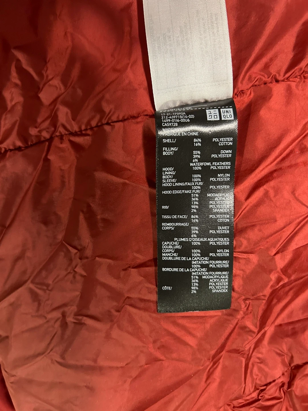 Uniqlo red down coat in size XS- fits S-M (up to size 4)