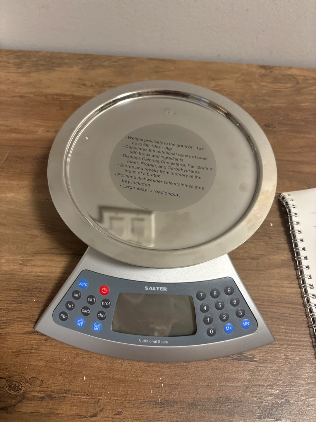 This Salter Nutritional Scale weighs food portions and calculates nutritional values. It analyzes over 900 foods, ingredients, and liquids, displaying calories, fat, cholesterol, fiber, protein, sodium, and carbohydrates. The scale has a polished, dishwasher-safe stainless steel tray and an easy-to-read display.