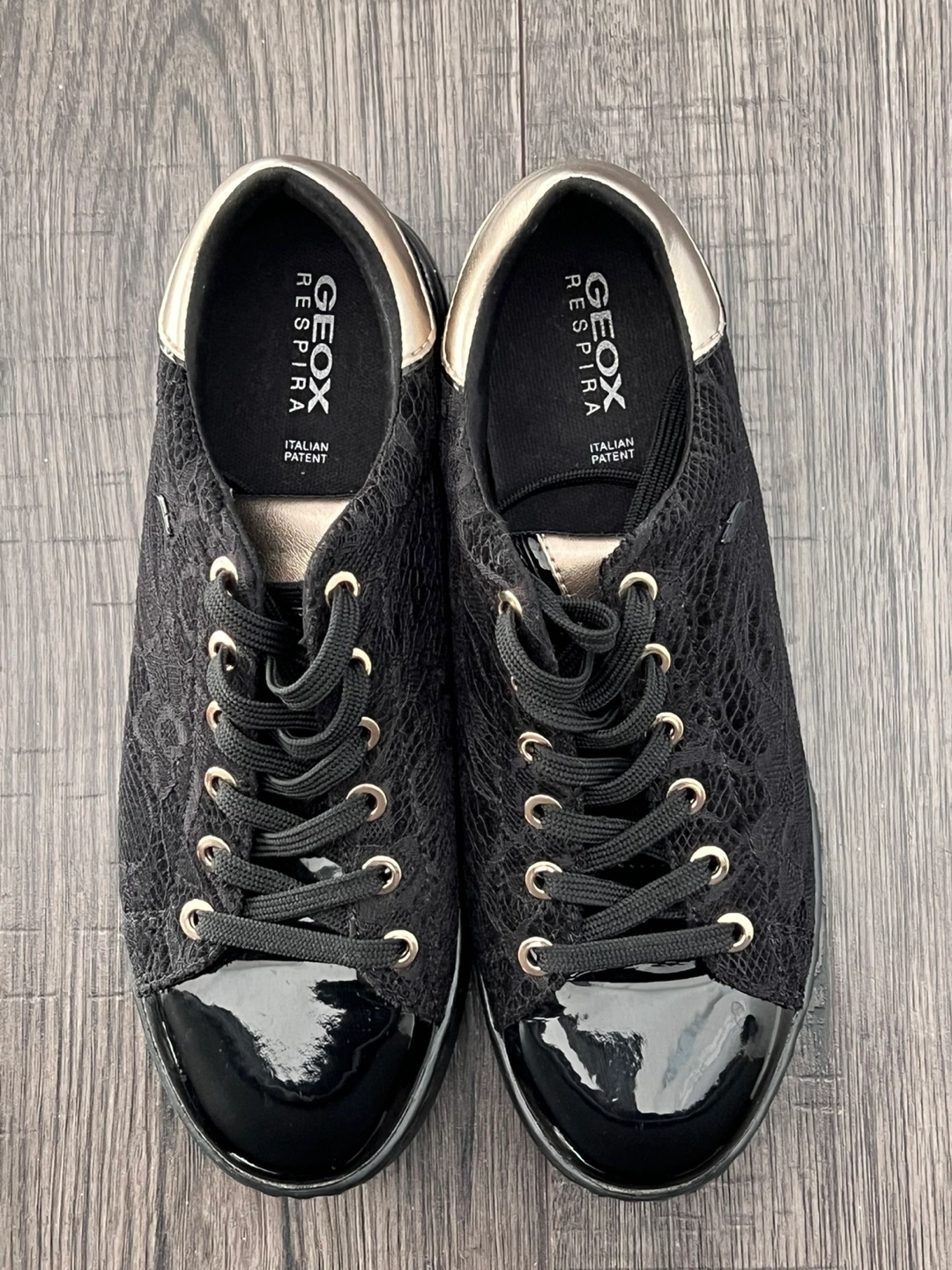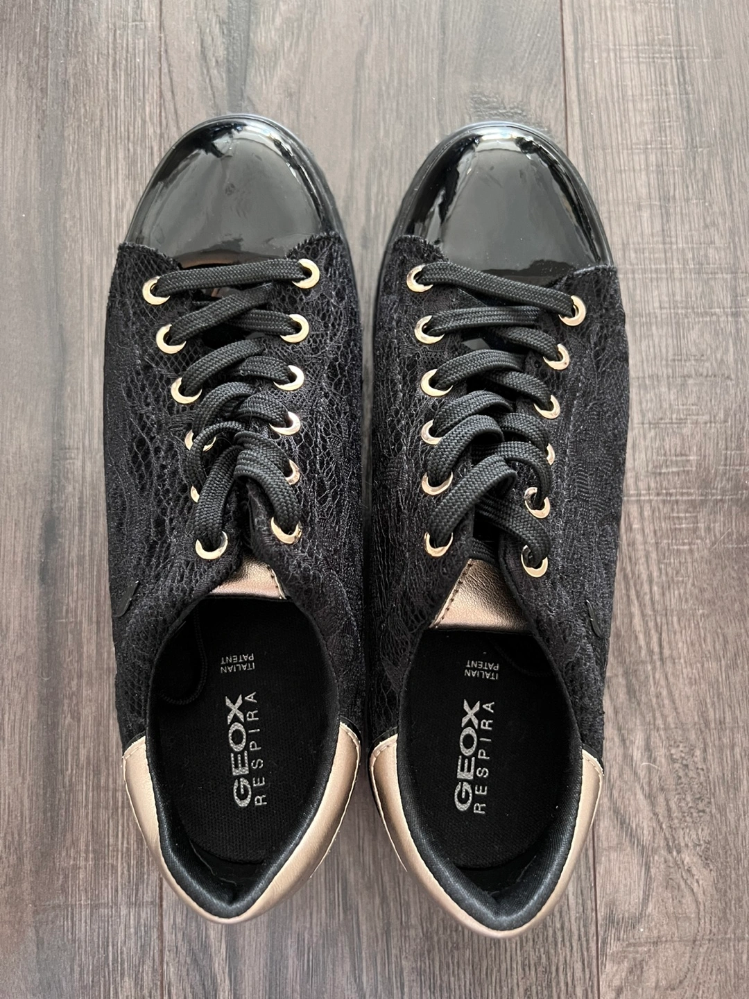 Super stylish black lace sneakers. Patent leather toe cap. Gold accents. Worn only ones! Very comfortable.