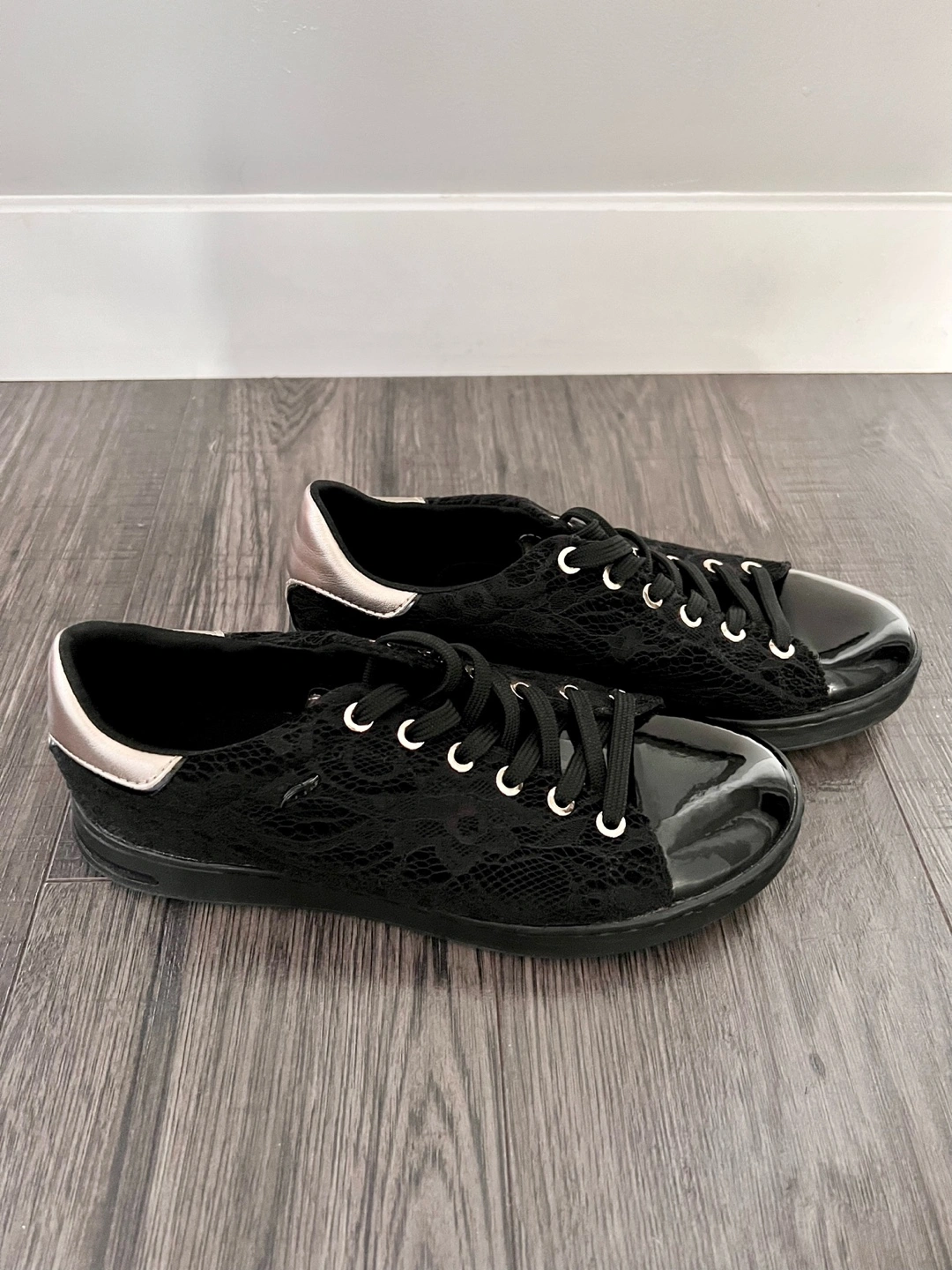 Super stylish black lace sneakers. Patent leather toe cap. Gold accents. Worn only ones! Very comfortable.