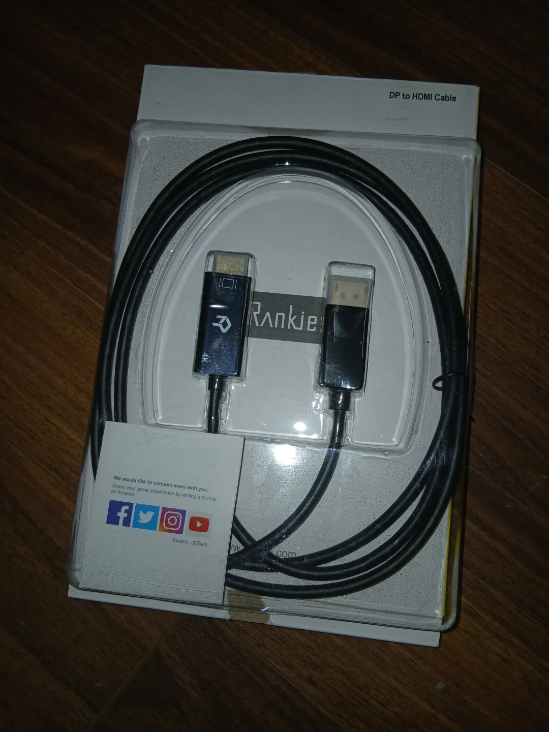 This is a Rankie DisplayPort to HDMI cable. It supports 4K resolution. It's useful for connecting devices with DisplayPort output to monitors or TVs with HDMI input.