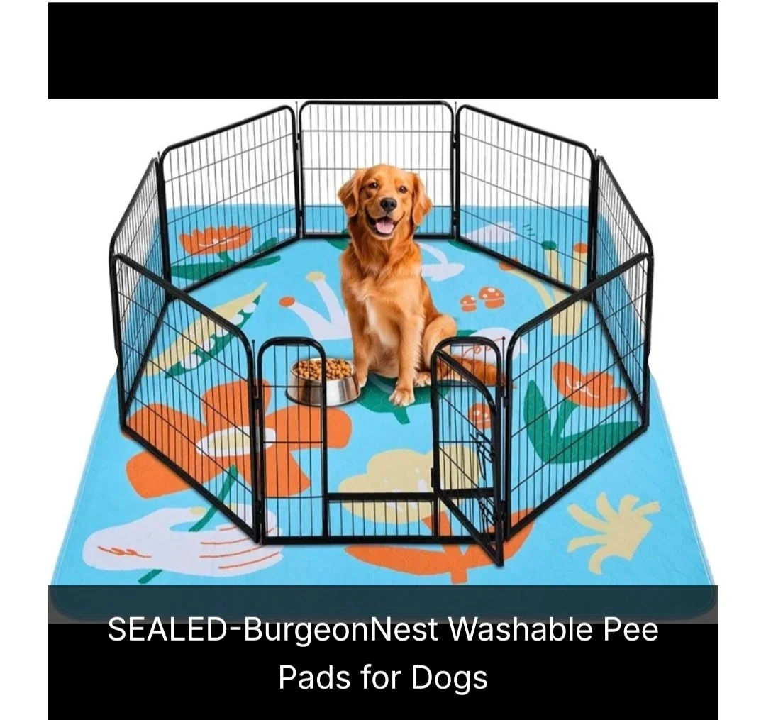 - Keep your floors clean and your pets comfortable with the BurgeonNest Washable Pee Pad for Dogs. Measuring a large 72''x72'', this reusable potty pad provides superior coverage for playpens, whelping boxes, crates, and potty training areas. It features a super absorbent layer that locks in moisture, a leakproof barrier to protect your floors, and a non-slip backing to keep it securely in place. Ideal for puppies, senior dogs, or multiple pets, this eco-friendly and cost-effective alternative to disposable pads is easy to wash and quick to dry. The soft blue surface offers comfort for your pet while maintaining a clean and odor-free environment.