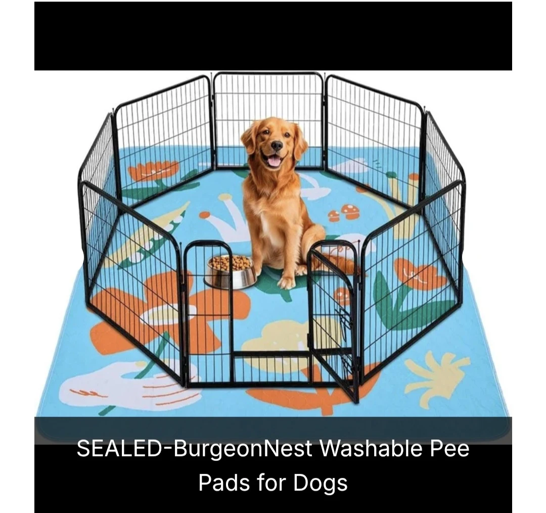 - Keep your floors clean and your pets comfortable with the BurgeonNest Washable Pee Pad for Dogs. Measuring a large 72''x72'', this reusable potty pad provides superior coverage for playpens, whelping boxes, crates, and potty training areas. It features a super absorbent layer that locks in moisture, a leakproof barrier to protect your floors, and a non-slip backing to keep it securely in place. Ideal for puppies, senior dogs, or multiple pets, this eco-friendly and cost-effective alternative to disposable pads is easy to wash and quick to dry. The soft blue surface offers comfort for your pet while maintaining a clean and odor-free environment.