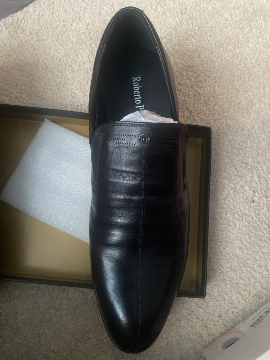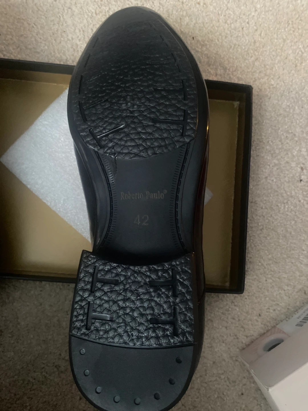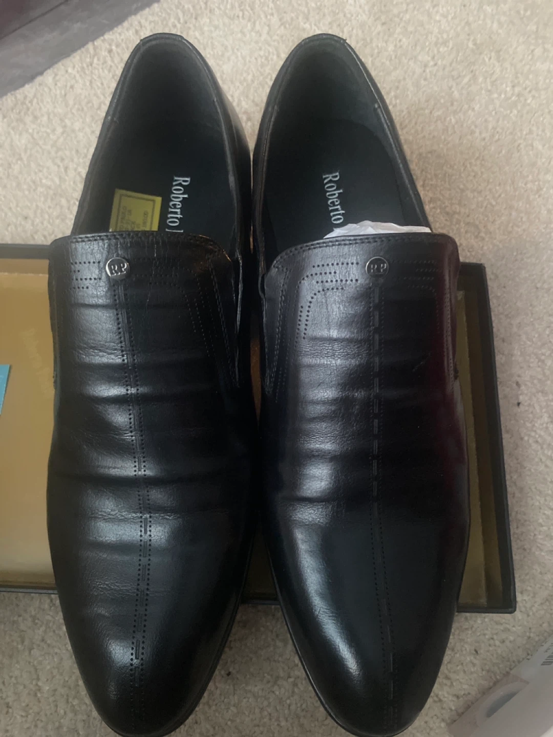 Selling a pair of Roberto Paulo black leather dress shoes in size 42. These shoes are in great condition and come with the original box. Perfect for any formal occasion! Price negotiable