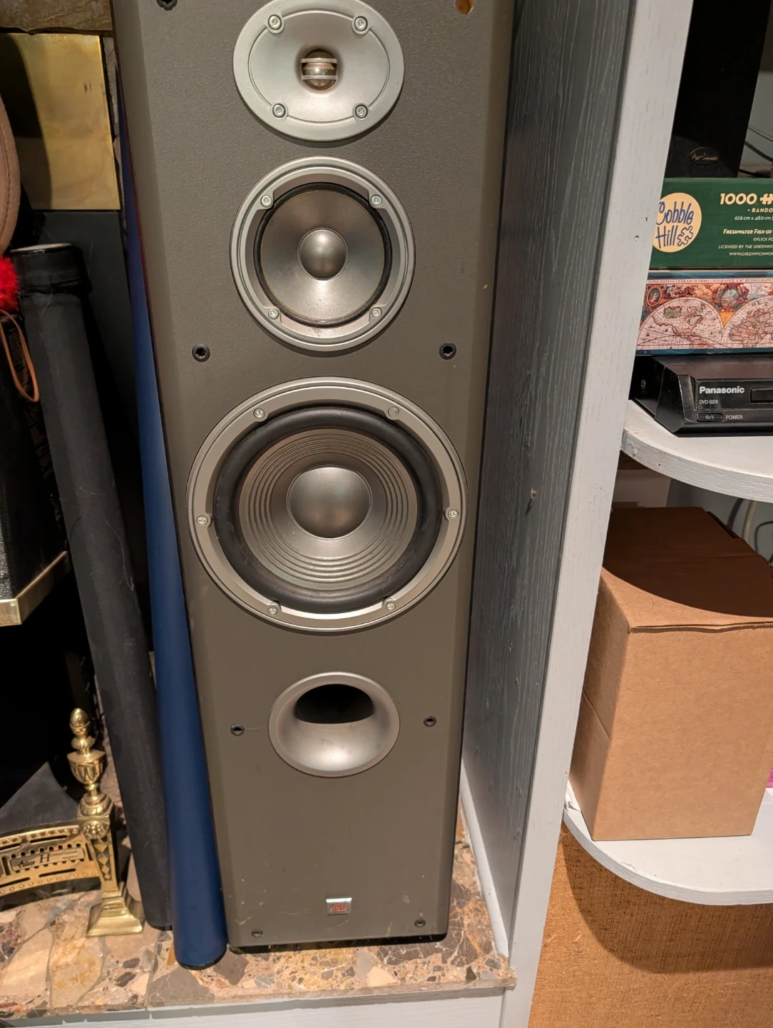 I have a pair of JBL floorstanding speakers. It's a tall speaker, great for home audio setups. It has a black fabric grille. The speaker appears to be a 3-way system.they are older but still work well.