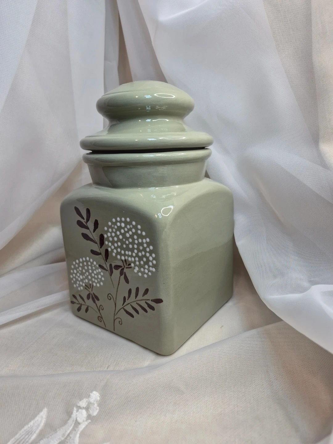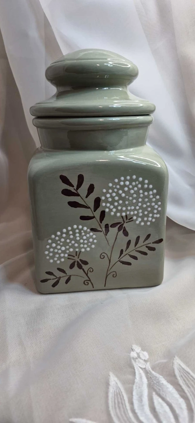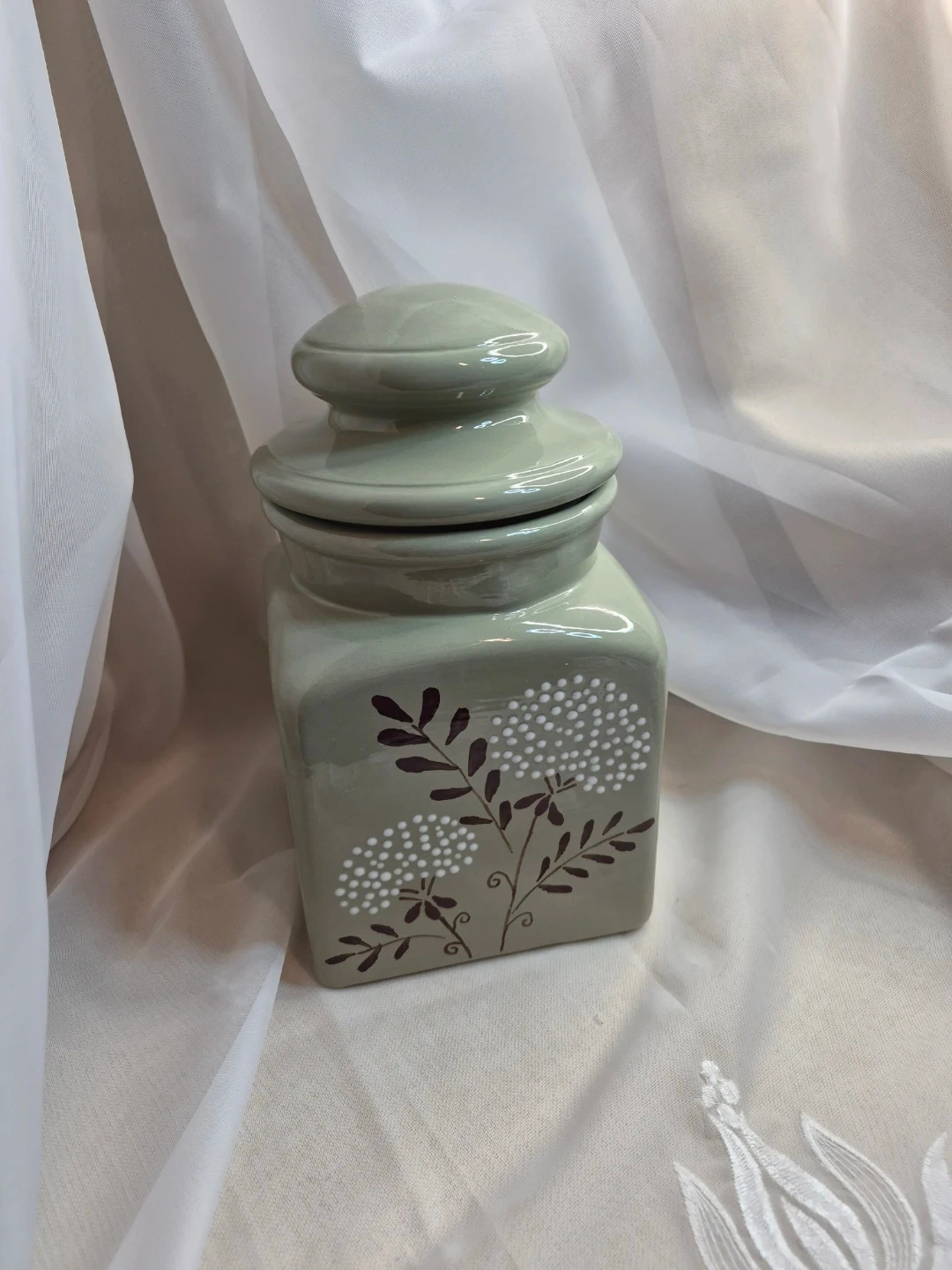 Beautiful Vintage 9" Total Tall Ceramic Hand Painted 1980's Canister Brand New Condition please see all pictures